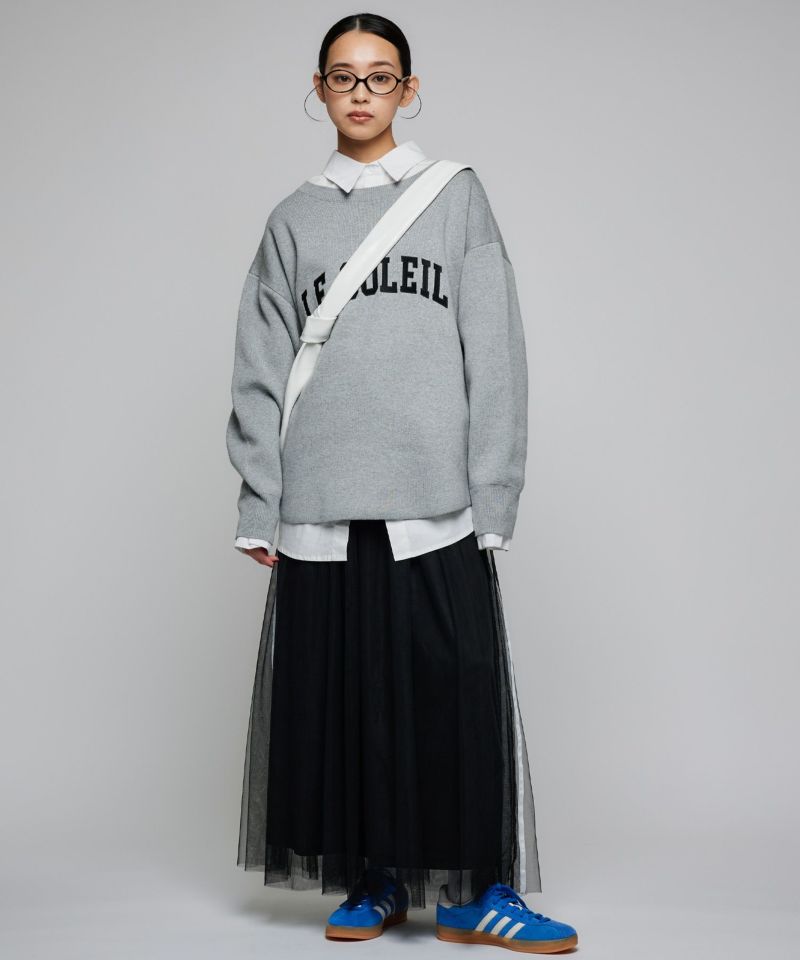 フロントの刺繍ロゴとゆったりとしたオーバーサイズなシルエットが、カジュアルながらも抜け感のあるラフな印象を演出してくれるニット。シンプルながらも存在感があり、デイリースタイルの主役として活躍します。