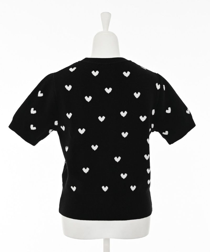 全面にハートモチーフが織り込まれた、フェミニンで愛らしいニットトップス。甘さの中にも洗練されたデザイン性を感じさせ、デイリーコーデに華やぎをプラスします。