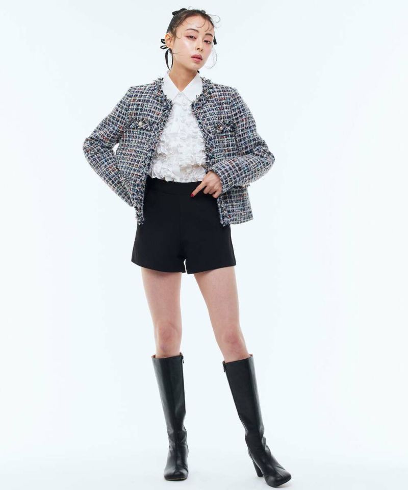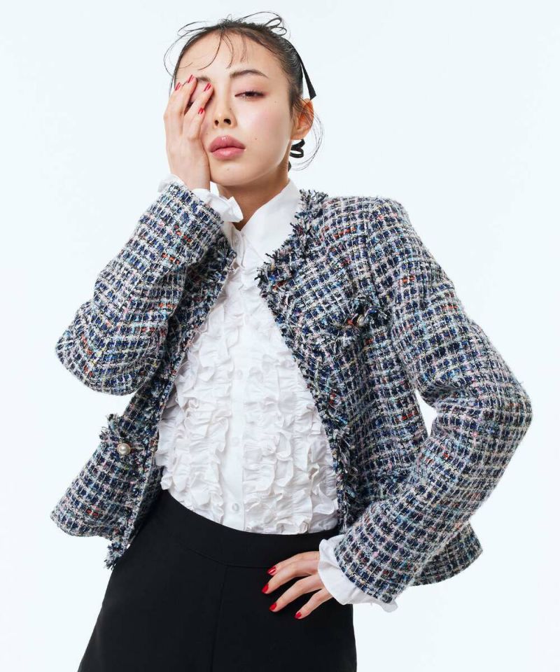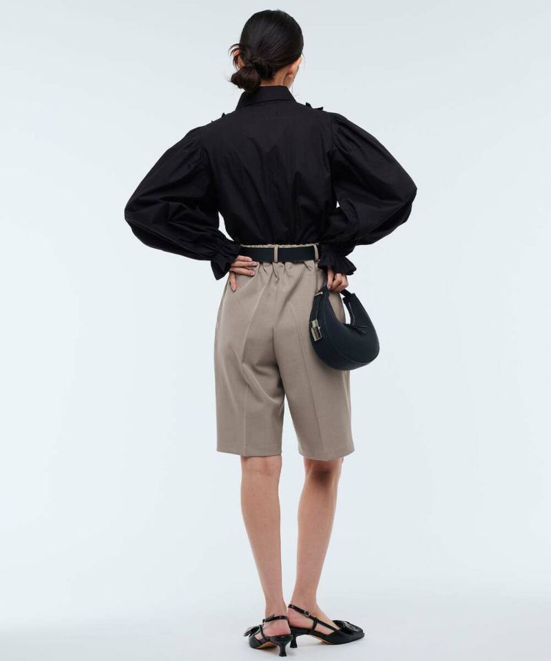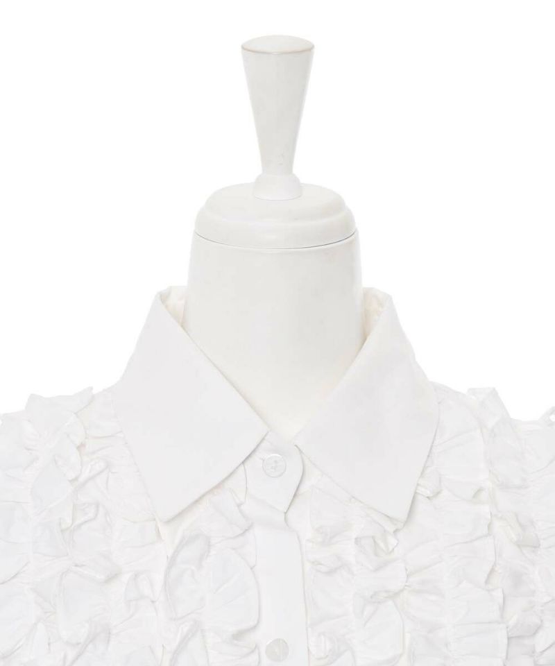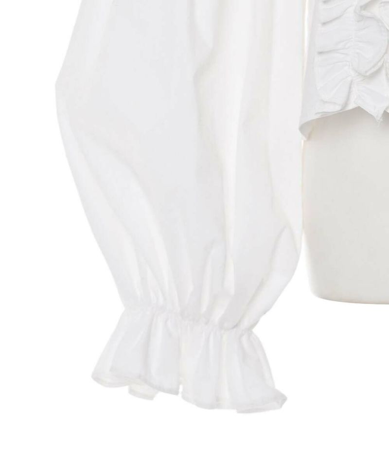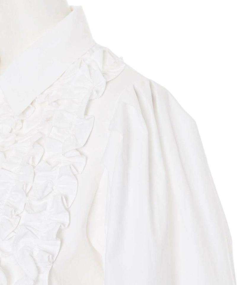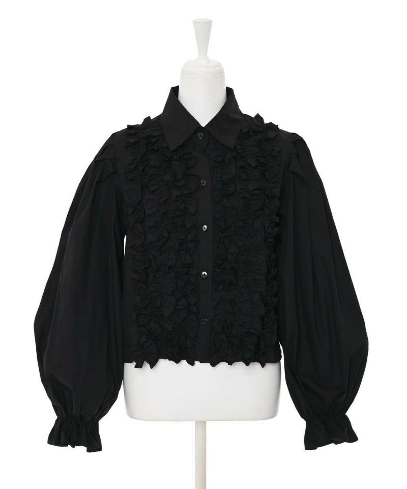 ボリュームのあるフリルデザインがフェミニンな印象のブラウス。パフスリーブが女性らしさをプラス。身頃とフリルが同色なので、派手過ぎずスタイリングしやすいデザインに。オケージョンスタイルにもオススメ。 【モデル】:H165 B78 H83 / H163 B78 H84