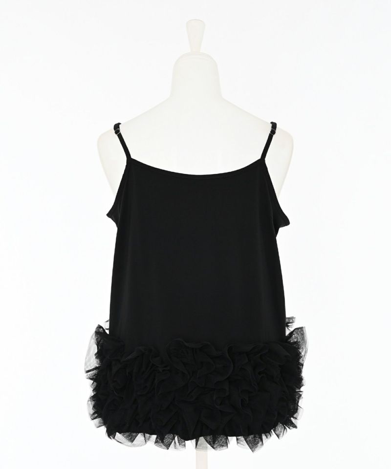 【PICCIN】心にフィットし、人を幸せにする洋服を。心まで作用するような洋服でありたいとPICCINは1990年に誕生以来、妥協せずこだわった洋服作りをしているブランド。さらっとした生地とチュールが施された可愛らしいトップス。肩紐のアジャスターで長さ調整可能。夏はデニムなど合わせてカジュアルに、秋口にかけてスウェットやカーディガン等レイヤードするのも◎春から秋口にかけて幅広くお使いいただけます。【model】H163 B78 H84 / H160 B80 H85