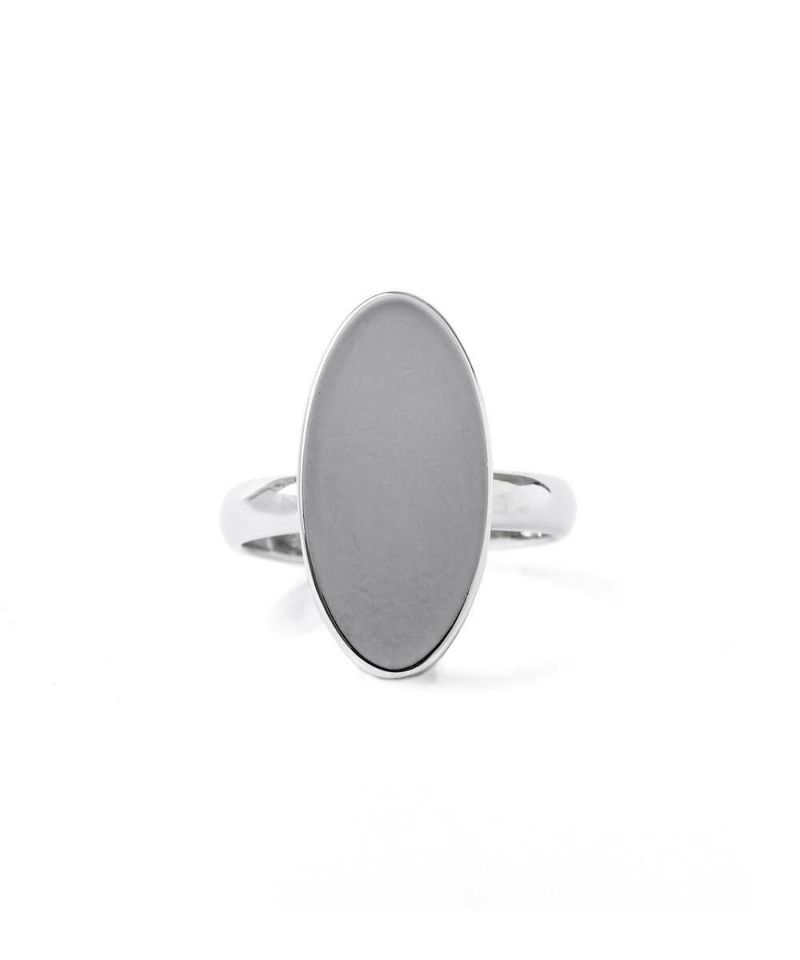 細めのリングに存在感のあるオーバル型のパーツをあしらったリング。