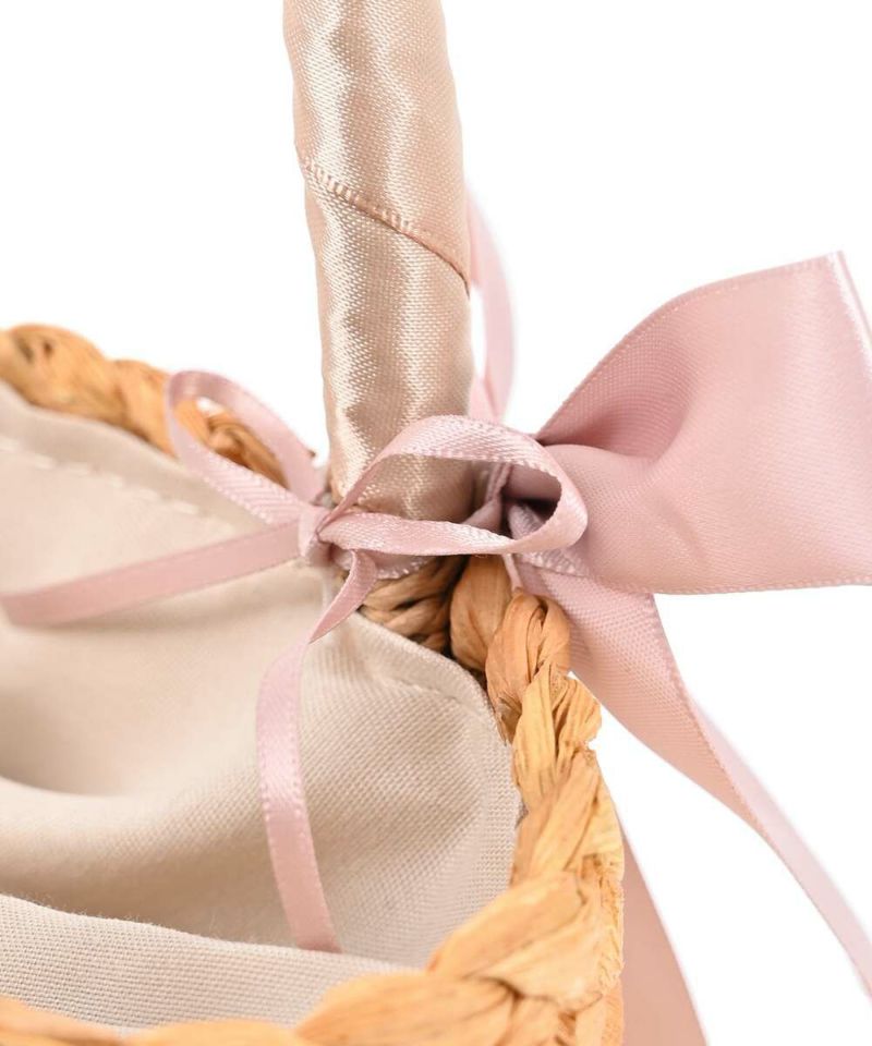 巾着仕様で機能性の高いシーズンライクなカゴバッグ。リボンの取り外し可能。