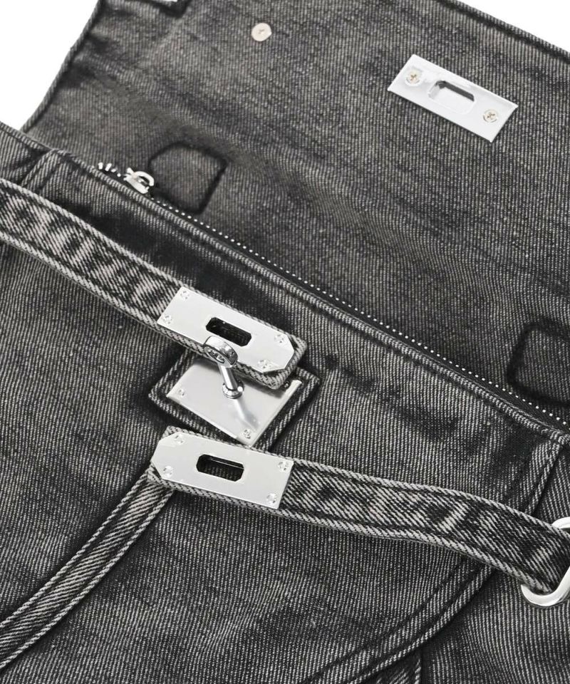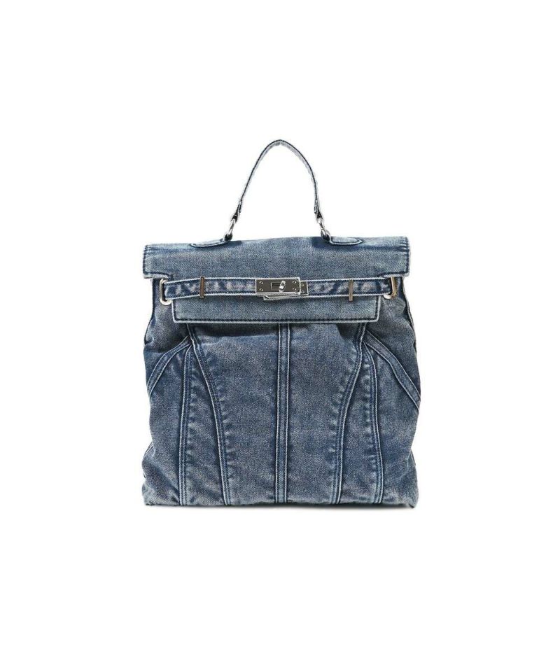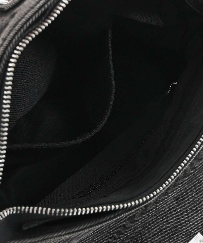 デニム素材を使用したリュック。シルエットがスクエア型でカジュアル過ぎずこなれ感の出るデザインがポイント。古着等にもピッタリのアイテム。