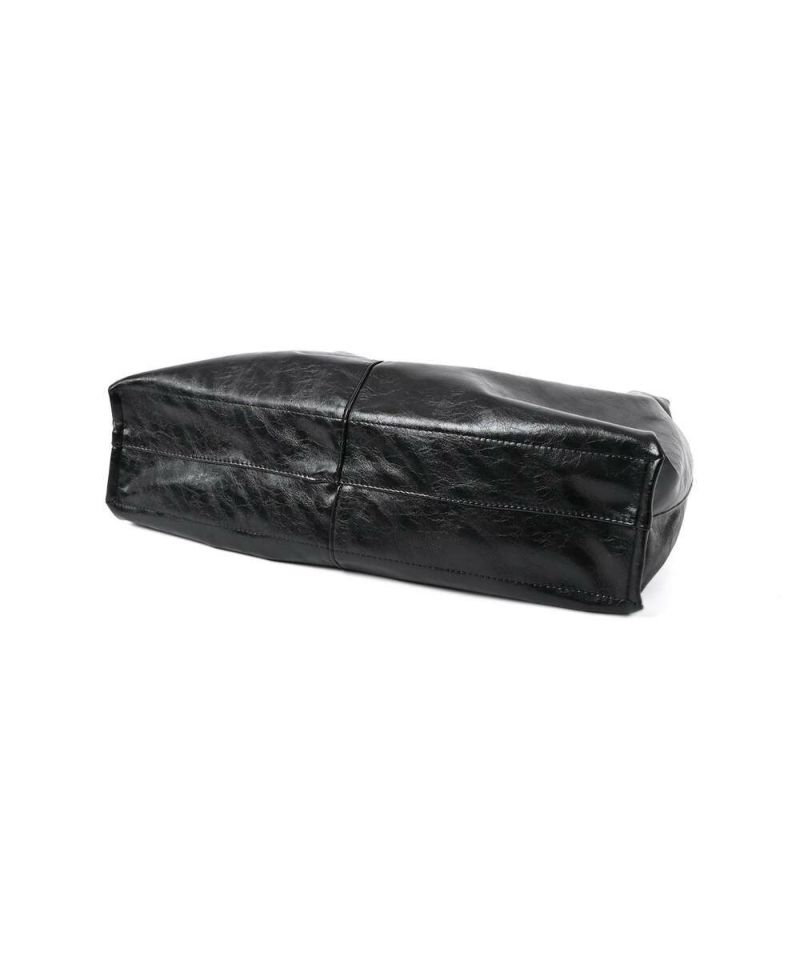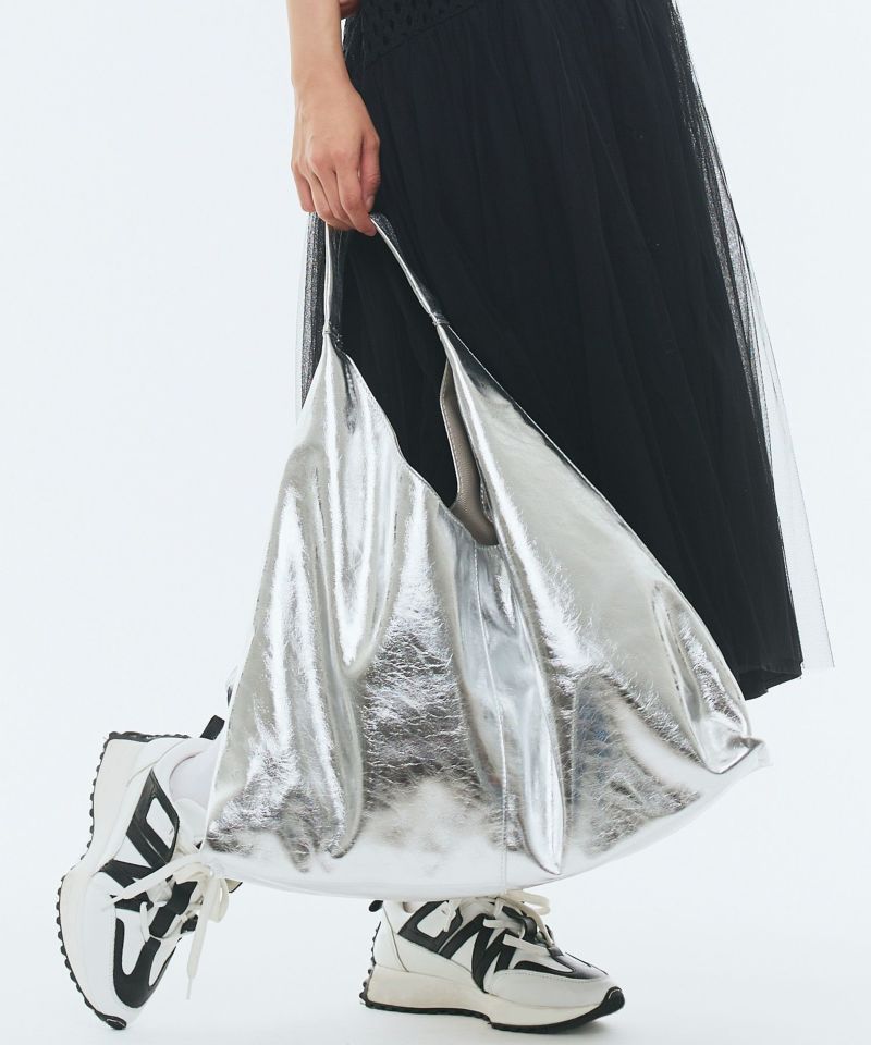 トライアングル型のトートショルダーバッグ。大きな入り口とマチもたっぷりな大容量サイズ。