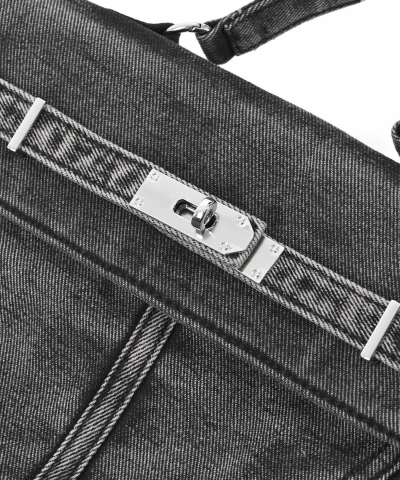 デニム素材を使用したリュック。シルエットがスクエア型でカジュアル過ぎずこなれ感の出るデザインがポイント。古着等にもピッタリのアイテム。