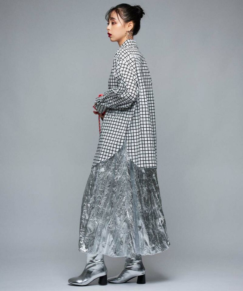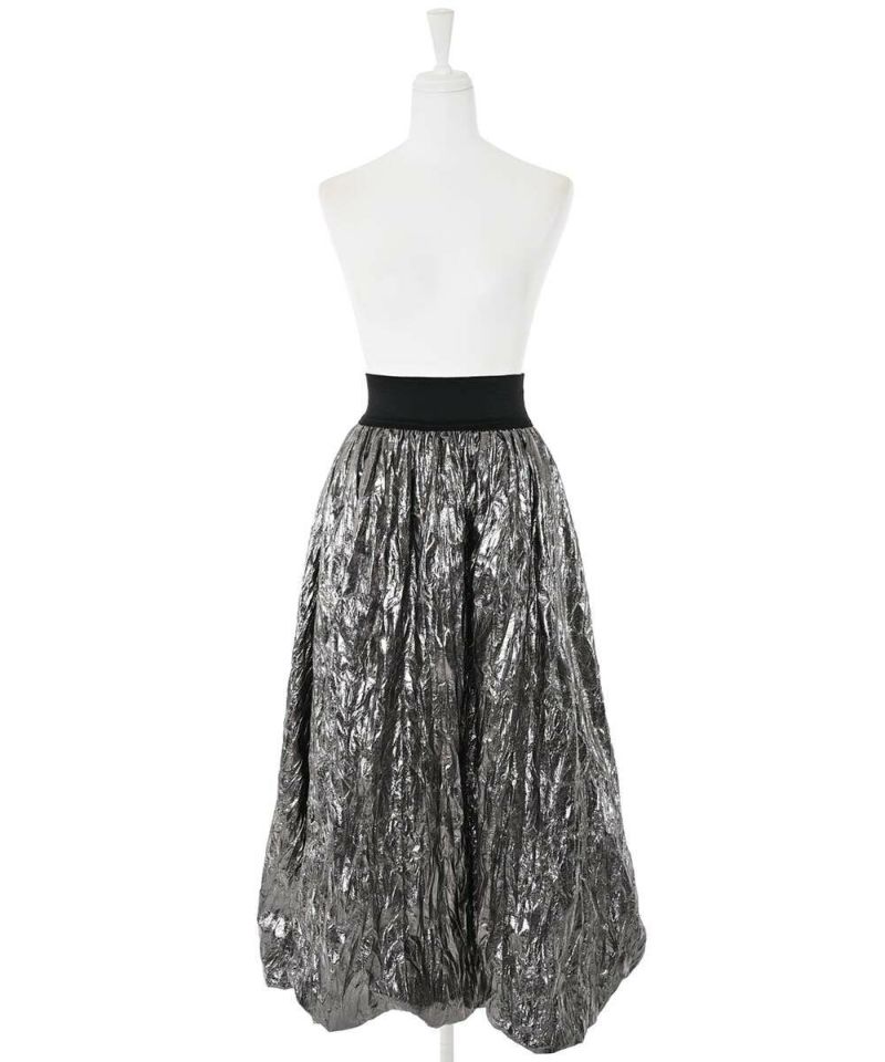 Narcissus人気アイテムのバルーンデザインに、メタリック素材が登場。女性らしいバルーンデザインに、メタリック素材を採用することでモード感をプラス。ベーシックなトップスとスタイリングするだけで、一気にお洒落上級者に。重くなりがちな秋冬に大活躍し、オールシーズンを通してコーディネートのポイントとなります。楽に着脱できるよう総ゴムを使用。 【model】H160 B80 H85/H165 B78 H83