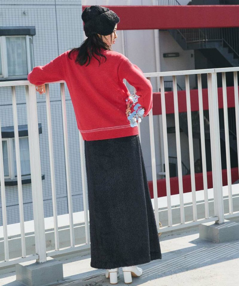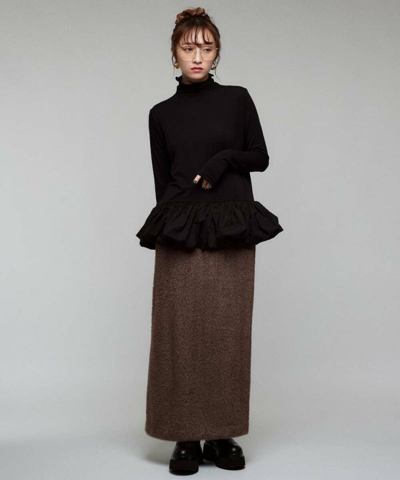 季節感漂うファー素材のロングスカート。綺麗めな雰囲気を持ちながら、デイリーにもカジュアルにも使えるデザイン。気になる部分をさりげなくカバーしてくれる緩めのIラインシルエット。【model】:H163 B78 H84 / H165 B78 H83
