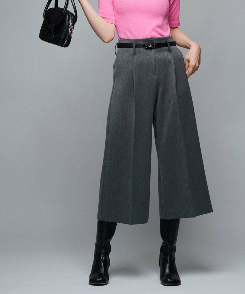 絶妙な丈感が、幼くみえず大人向きなキュロットパンツ。カジュアルにもオフィスライクにも使いやすく、すっきりと上品に着こなせるフロントのタックデザインがポイント。【model】:H165 B78 H83 / H163 B78 H84