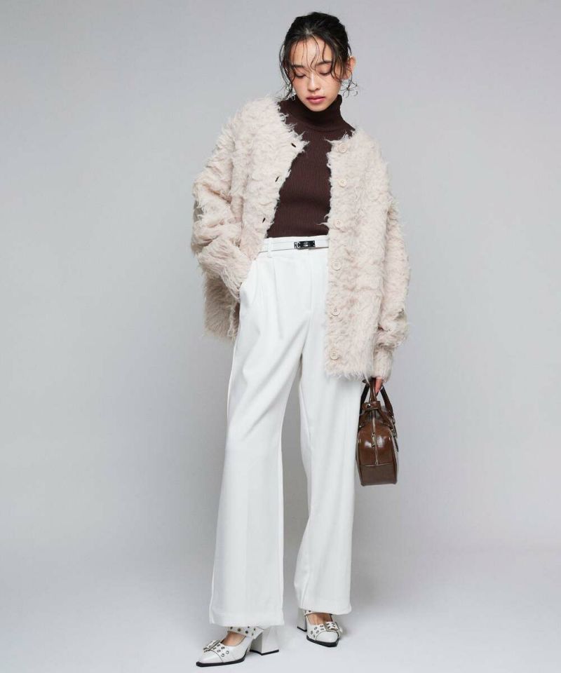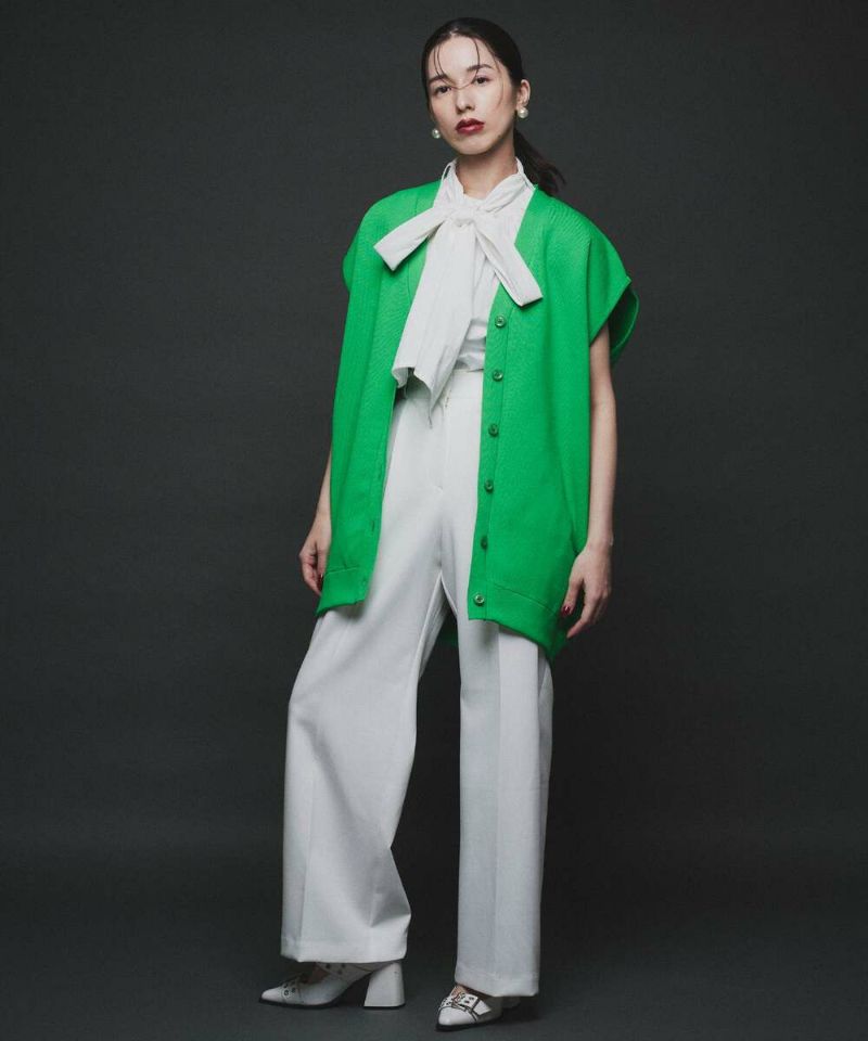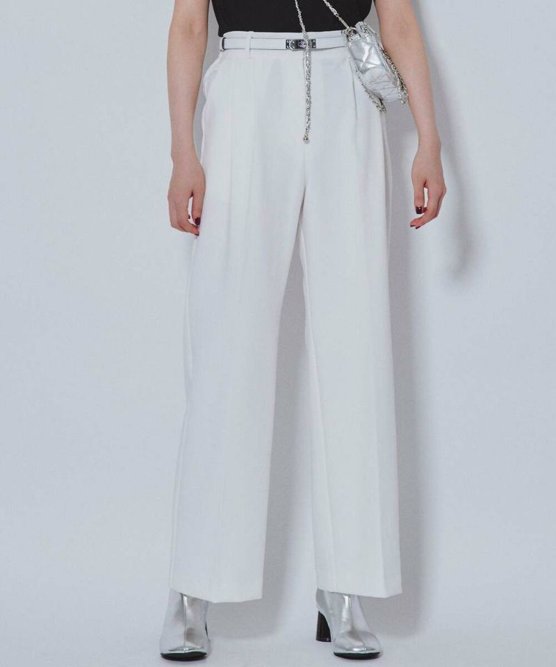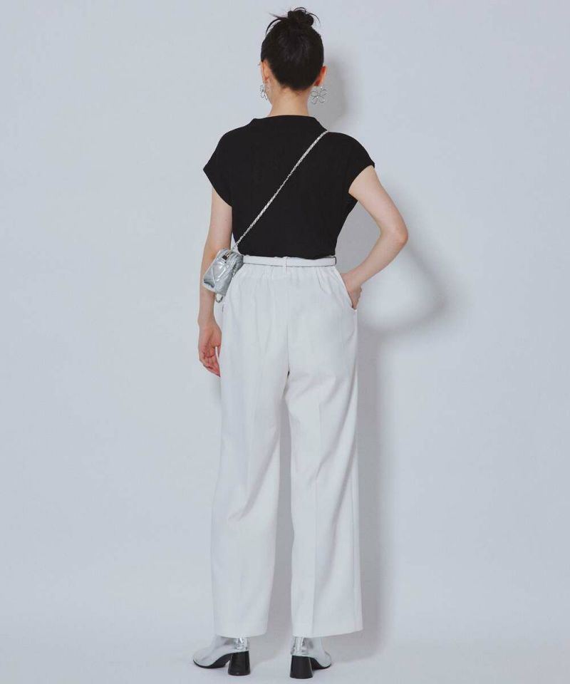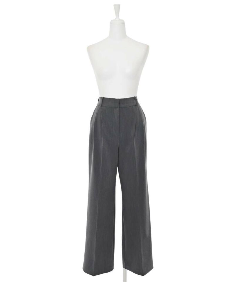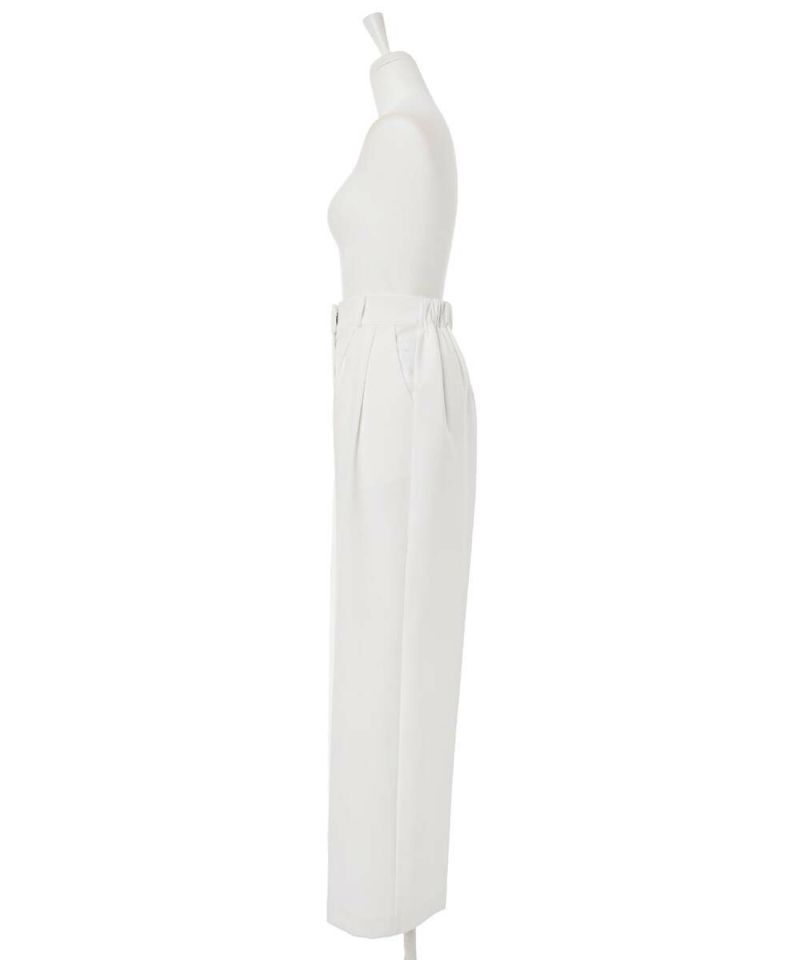 裾にかけて少しルーズなワイドパンツ。センタープレスが高級感をプラスし、スタイルアップ効果を。ウエストゴムを採用し、ストレスフリーに綺麗見せさせてくれるアイテム。オケージョンスタイルにもオススメ。【model】:H165 B78 H83 / H160 B80 H85
