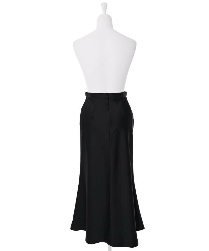 裾に向けてさりげなく広がるシルエットが綺麗なフレアスカート。動くたびに程よく現れるドレープと、落ち着いたマットサテンの輝きが大人のレディコーデのポイントに。【model】:H165 B78 H83 / H163 B78 H84