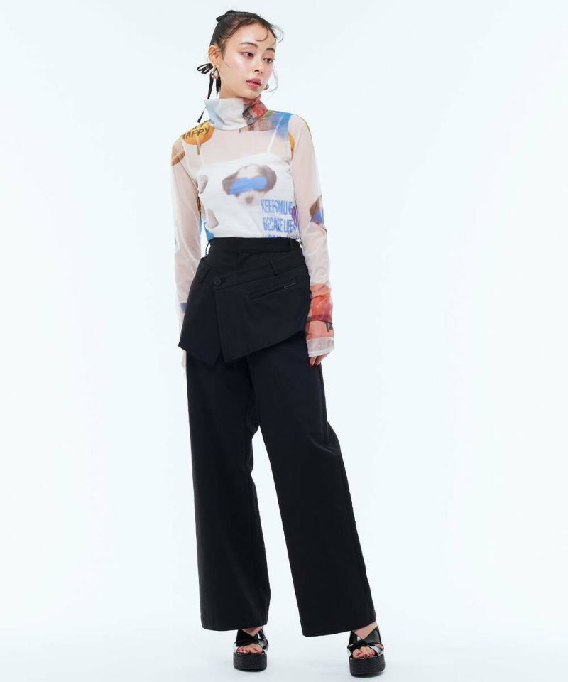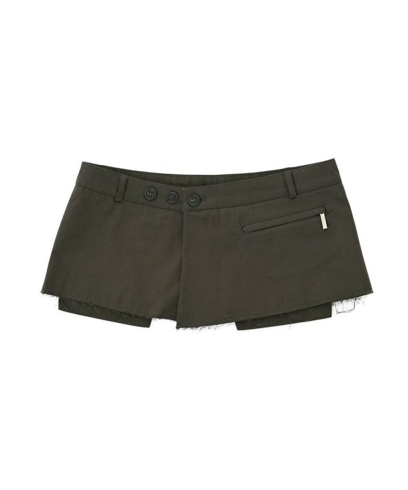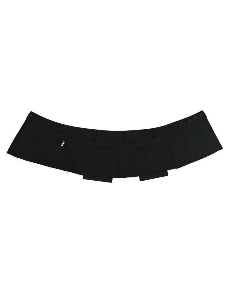 普段のスタイリングにレイヤードするだけで、お洒落上級者になれるプラスワンアイテム。ウエストは3段階で調節できるボタン付きで、実用性のある3つのポケットデザインがポイント。同素材のツイルワイドパンツとセットで着用するのもオススメ。【モデル】:H165 B78 H83 / H163 B78 H84