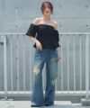ビジューダメージデニム