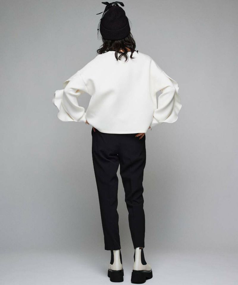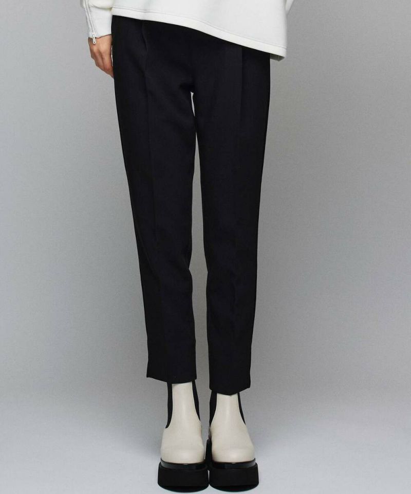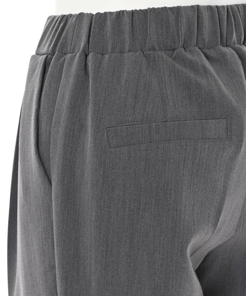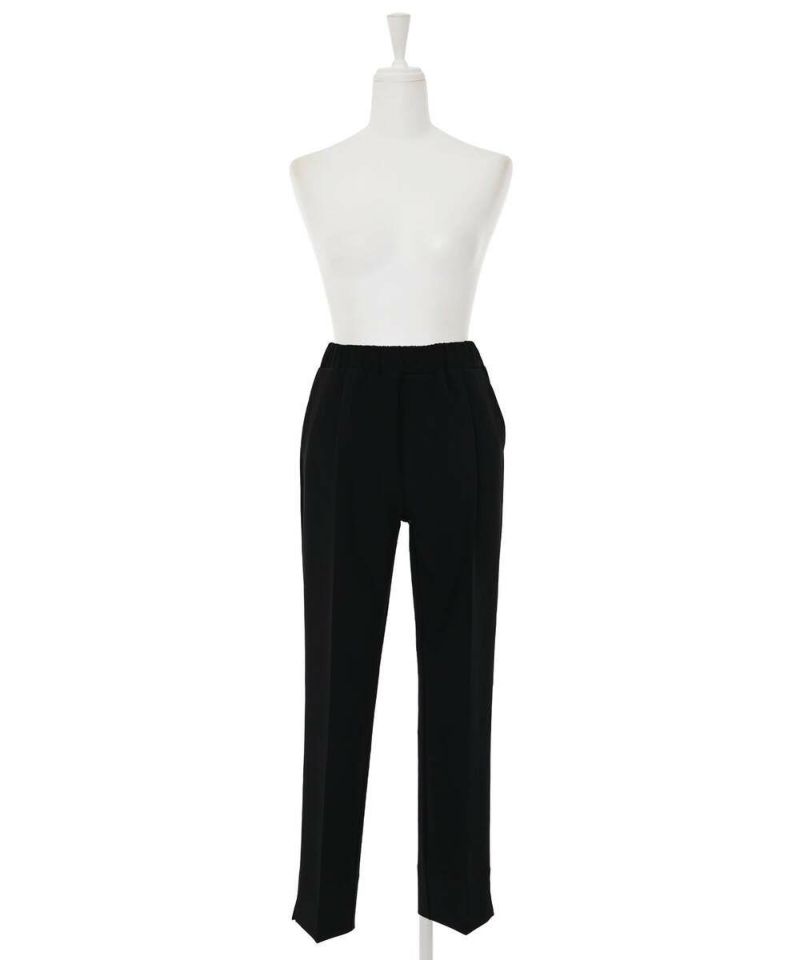 カジュアルでも、綺麗めでもシーンを問わず着まわせる 上品で大人っぽく決まるアイテム。ウエスト部分はゴムで、風通しも良く着心地の良い万能アイテム。センタープレスが脚長効果を期待。さりげないサイドスリットもポイント。