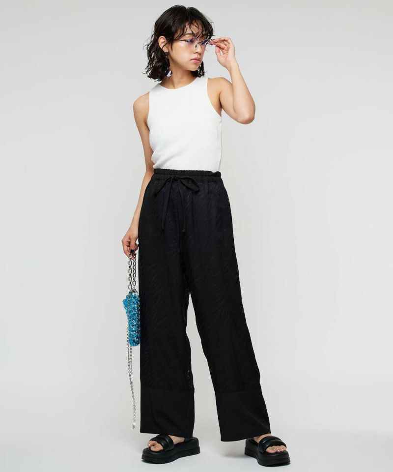 ゼブラ柄と切り替えデザインが高級感溢れるパンツ。ウエストゴムとトレンドのゆるっとしたサイズ感が、ストレスフリーにお洒落できるアイテム。ポケット付きで機能性も◎同じ素材のゼブラノースリシャツとのセットアップがオススメ。 【model】H163 B78 H84