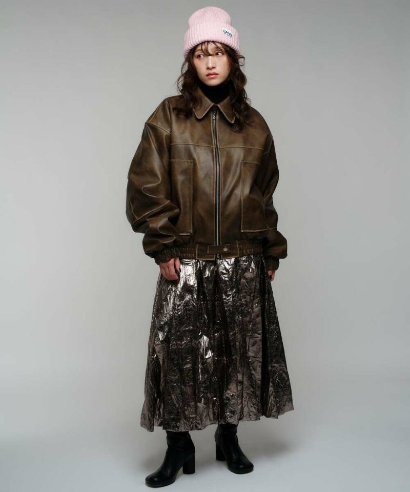 Narcissus人気アイテムのバルーンデザインに、メタリック素材が登場。女性らしいバルーンデザインに、メタリック素材を採用することでモード感をプラス。ベーシックなトップスとスタイリングするだけで、一気にお洒落上級者に。重くなりがちな秋冬に大活躍し、オールシーズンを通してコーディネートのポイントとなります。楽に着脱できるよう総ゴムを使用。 【model】H160 B80 H85/H165 B78 H83