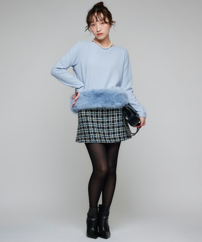 上品に着映えるツイード素材を使用したシーズンムード高まるミニスカート。織り交ぜたカラー使いが装いに華やかさをプラスします。インナーパンツ付きでミニ丈でも安心して着用可能。