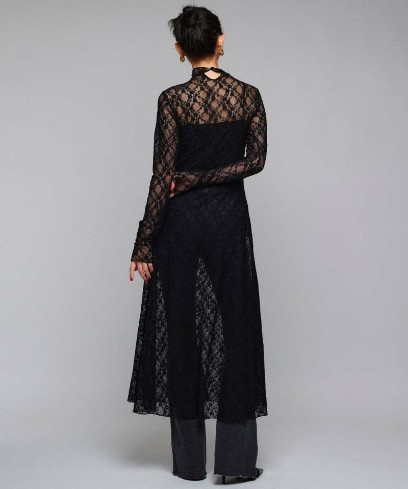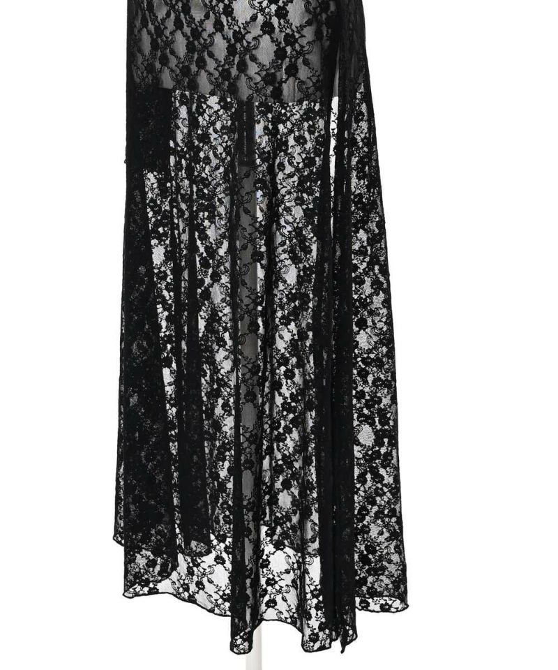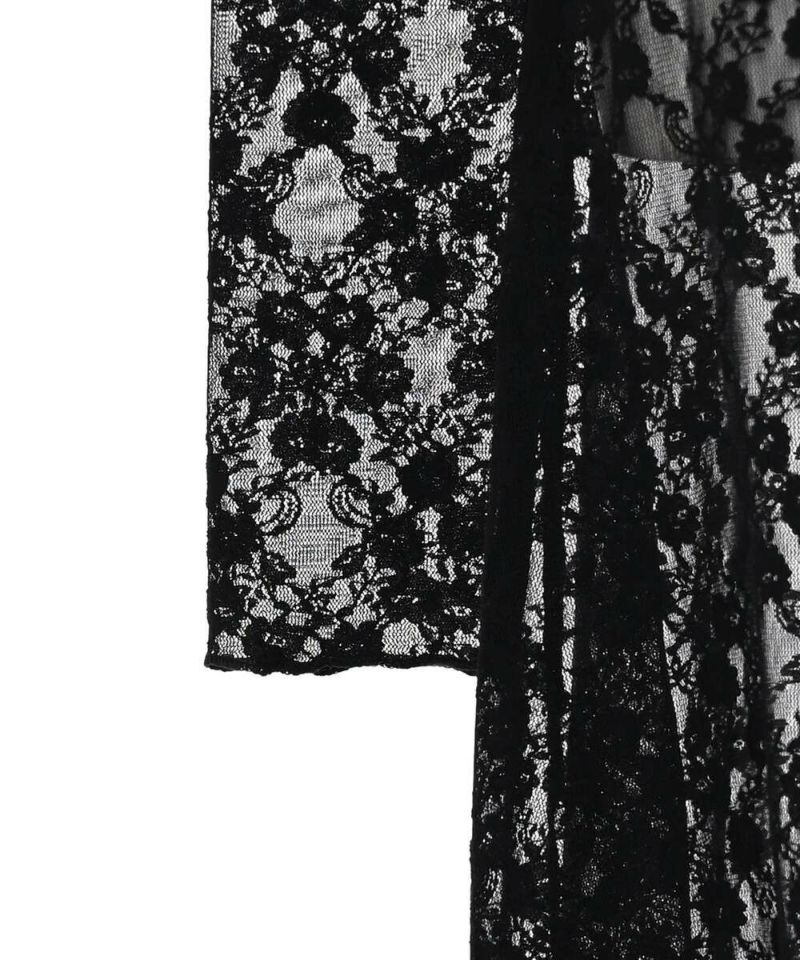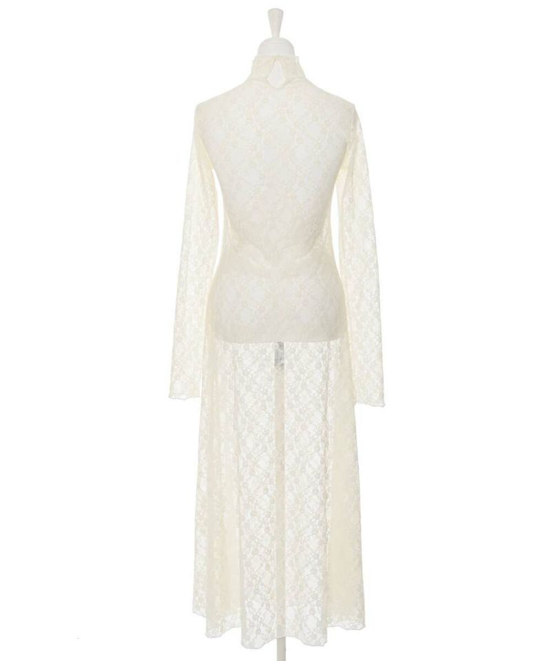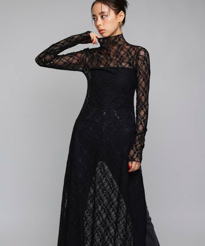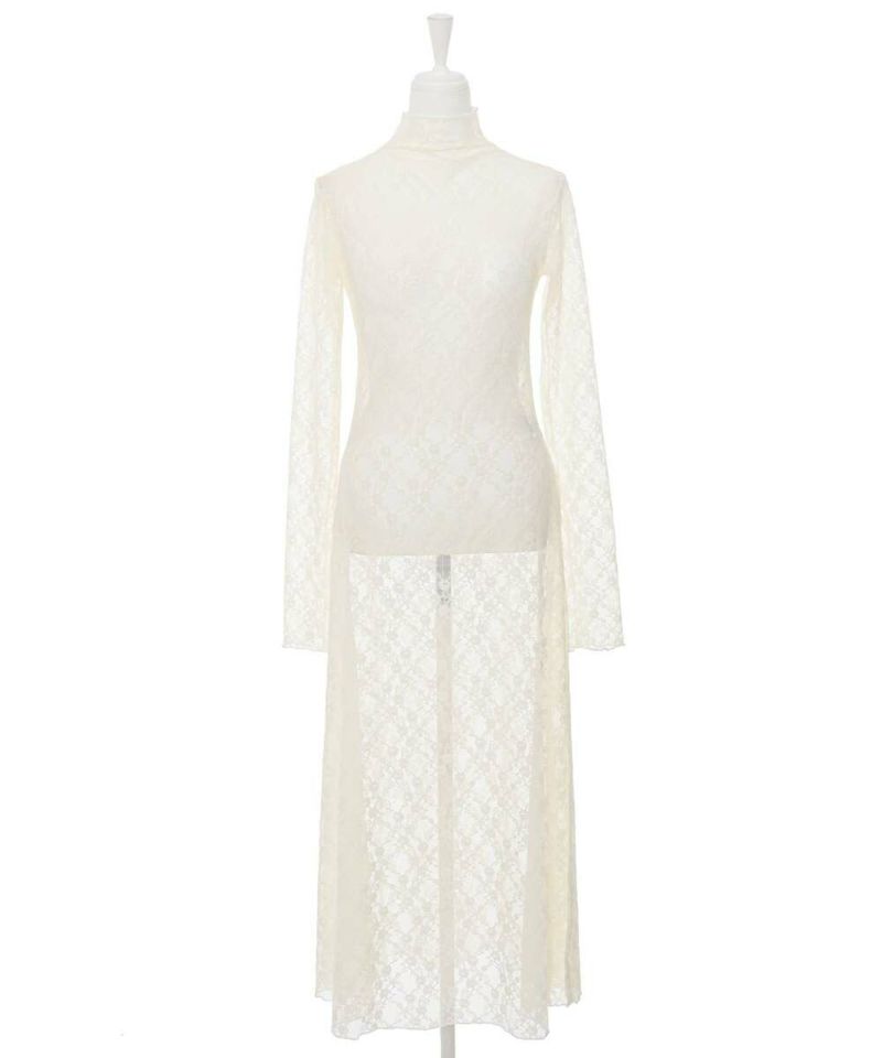 透け感のあるレースが大人の女性に仕上げてくれるロング丈ワンピース。片方サイドに施された大胆なスリットが抜け感を演出。様々なボトムスとのレイヤードもデザインを生かしてくれるので、オケージョンシーンのみならずデイリーコーデにもフル稼働間違い無し。【model】H165 B78 H83