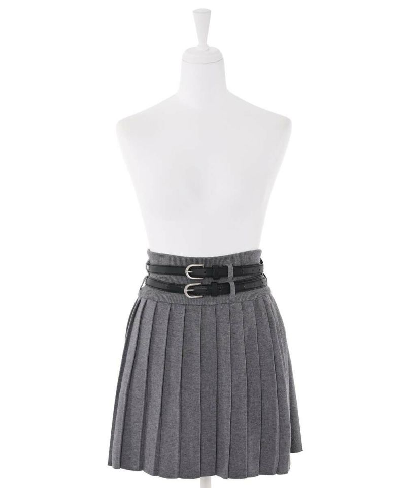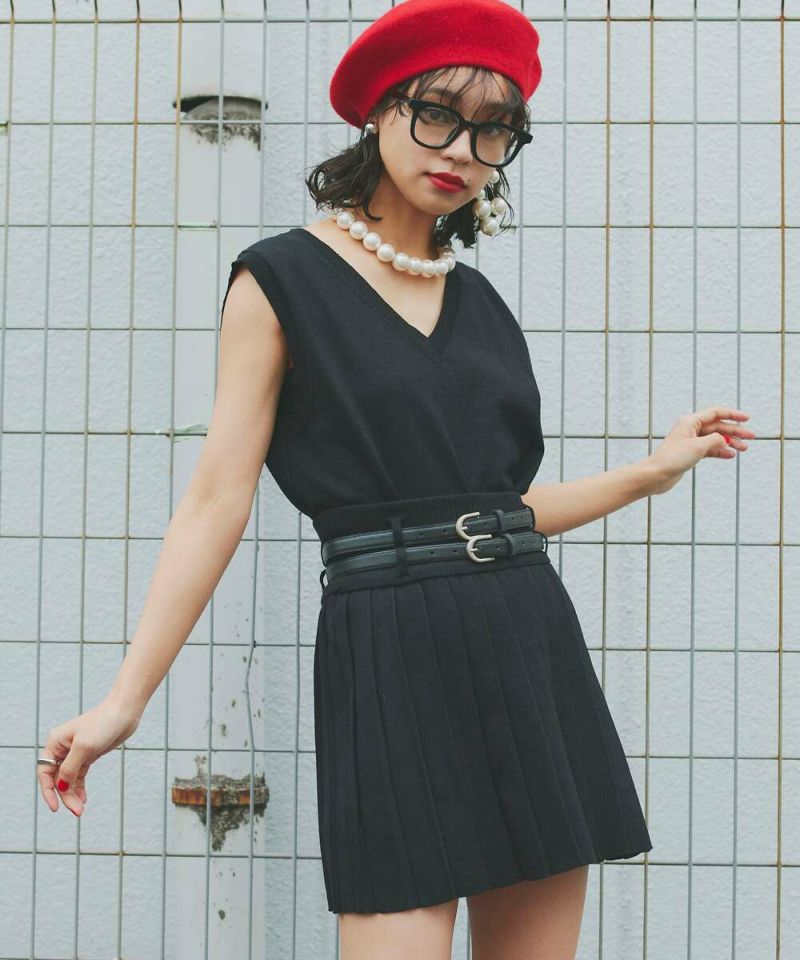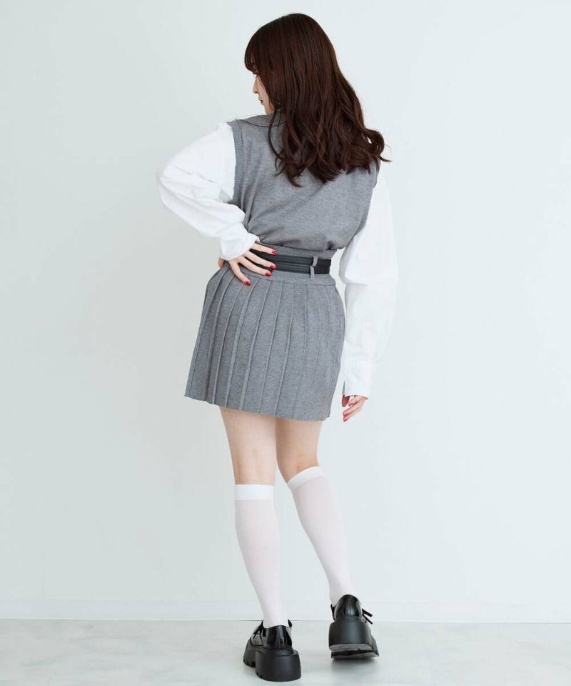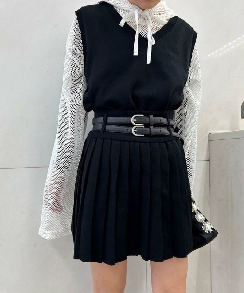 ニット素材のベスト×プリーツミニスカートのセットアップ。薄手のニットなのでサラッと着用でき、レイヤードするとロングシーズン活躍するアイテム。ベルトの取り外し可能なので、ベスト・スカート・ベルトそれぞれ単品使いでき、コーディネートの幅が広がるセット。モデル身長:156cm/163cm/153cm