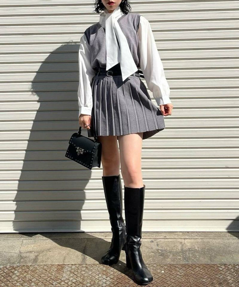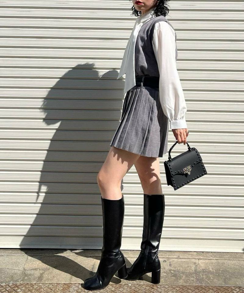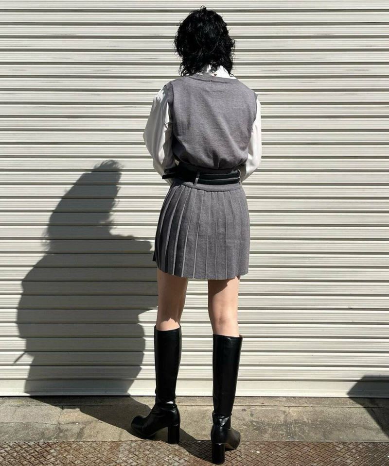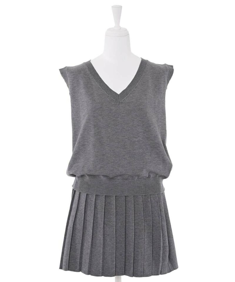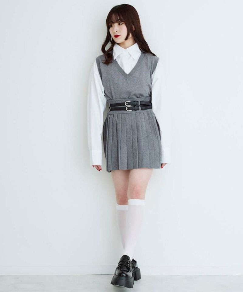 ニット素材のベスト×プリーツミニスカートのセットアップ。薄手のニットなのでサラッと着用でき、レイヤードするとロングシーズン活躍するアイテム。ベルトの取り外し可能なので、ベスト・スカート・ベルトそれぞれ単品使いでき、コーディネートの幅が広がるセット。モデル身長:156cm/163cm/153cm
