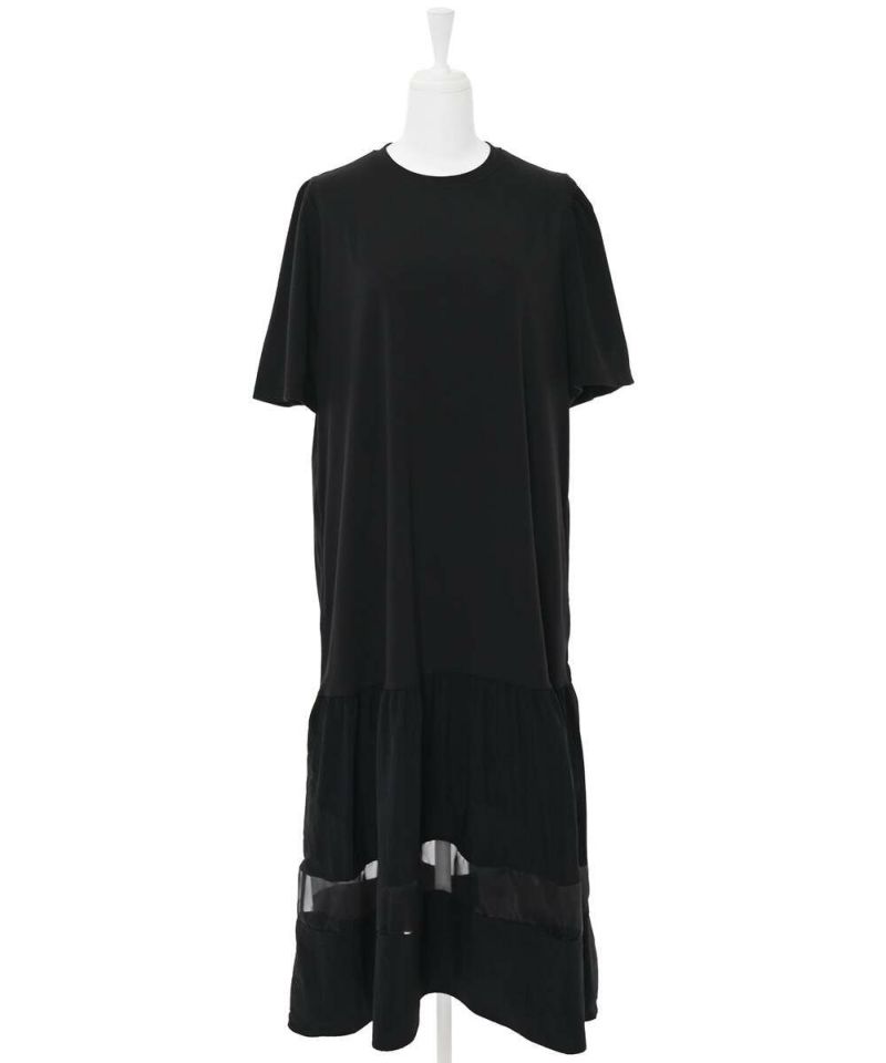 ■ POINTシンプルながらも目を惹く大人のリラックスワンピース。ヒップ下でギャザーを添えた切替えラインのマーメイドシルエット。さらにシアー素材をMIXした洗練されたデザインが魅力。シアー部分から覗く足元がぬけ感をプラス。計算されたシルエットがスタイルアップを叶えてくれるポイント。袖はさりげないパフデザインと五分丈で気になる二の腕をカバー。立体感と程よい女性らしさが魅力的な1枚。ロング丈でもふわっと広がるシルエットで涼しく着用いただけます。ノンストレスな着心地で夏のワードローブにかかせないアイテムに。■ STYLING 1枚でさらっと着るのはもちろん、デニムやボトムとレイヤードしたメリハリのあるコーデもおすすめ。ボディーラインを拾わないゆとりあるシルエットとサイドポケット付きでタウンユース、リゾートにもおすすめ。モード、カジュアル、フェミニンなど合わせるシューズや小物も選ばない着回し力の高さが魅力。【model】H163 B78 H84