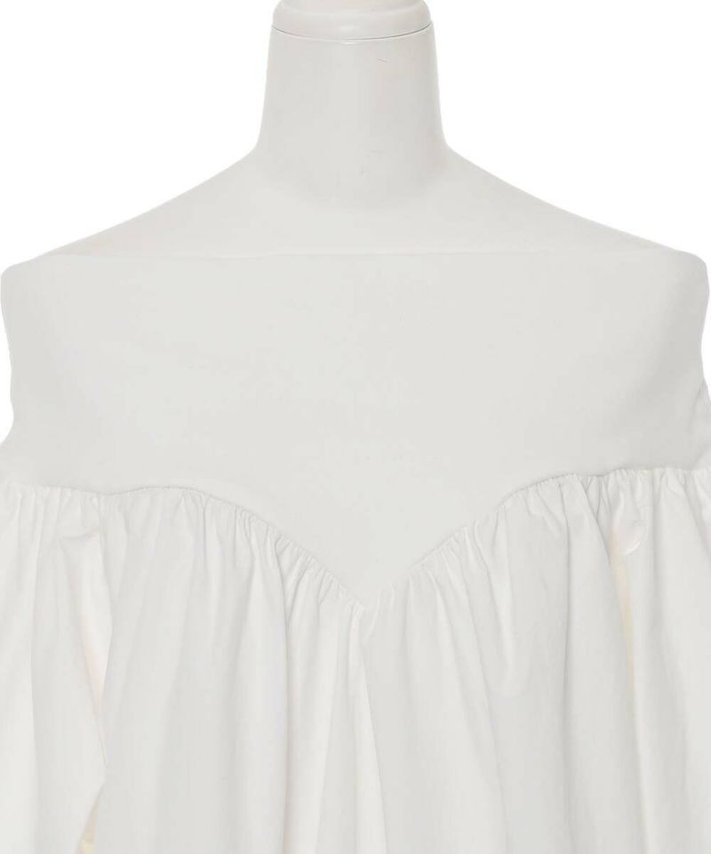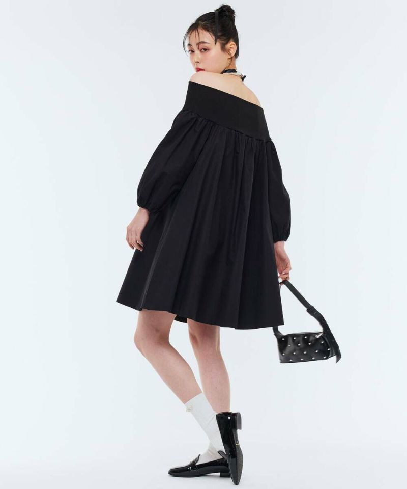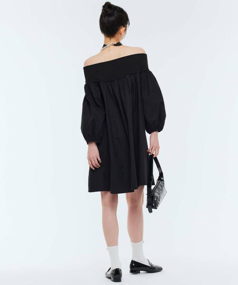 デコルテを映えさせるオフショルデザインとパフスリーブが女性らしいワンピース。オフショル部分は伸縮性のあるリブ素材で、身頃と袖部分は風通しの良いコットン素材を使用。ボディラインを拾わないAラインシルエットが嬉しいポイント。【model】H165 B78 H83