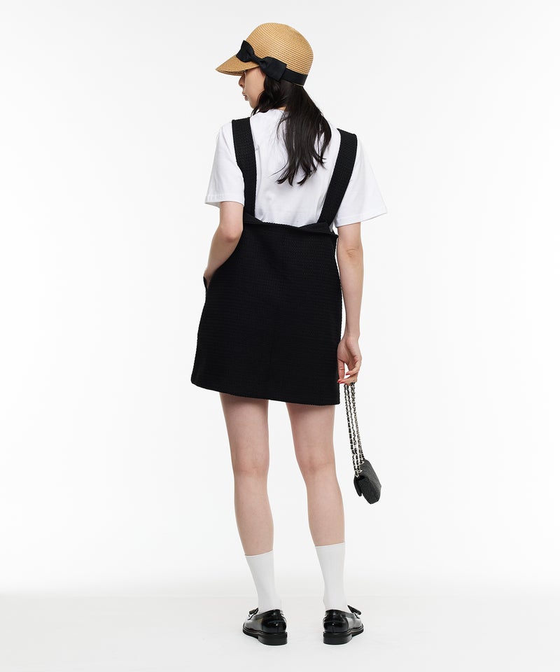 しっかりとした表情のあるツイード素材を使用し、上品で高級感のある印象に。程よい厚みがありながらも軽やかな着心地で、シーズンムードを高めてくれる素材感です。スカート部分には裏地が付いているため、快適に着用できるのも嬉しいポイント。カジュアルにもきれいめにも着回しやすいツイードジャンパースカートです。
