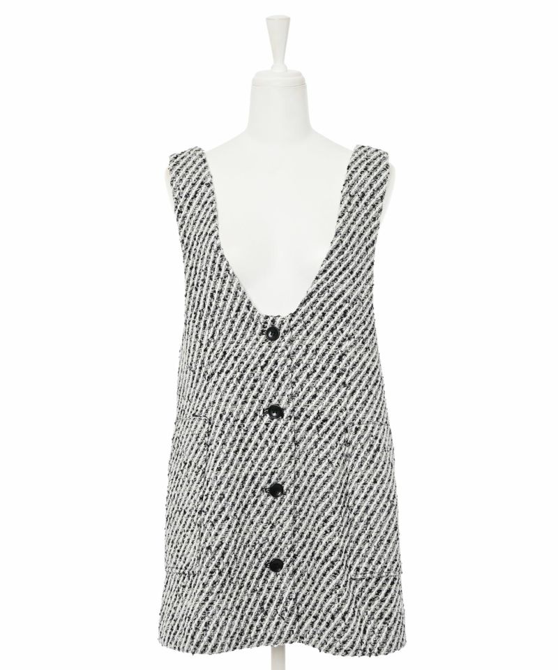【PICCIN】心にフィットし、人を幸せにする洋服を。心まで作用するような洋服でありたいとPICCINは1990年に誕生以来、妥協せずこだわった洋服作りをしているブランド。ラメ糸を織り交ぜた立体感のあるツイード素材がシーズンムードを高めるワンピース。フロントボタンと大きいポケットがメリハリのある1枚。ブラウスやニットなどの様々なインナー次第で幅広く活躍。【model】H165 B78 H83