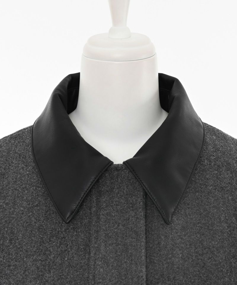 柔らかい印象の身頃素材に襟元だけフェイクレザーを採用した異素材MIXデザイン。程よく厚みとハリ感があることでシルエットがキープされ、保温性も兼ね備えた素材です。
