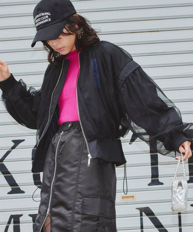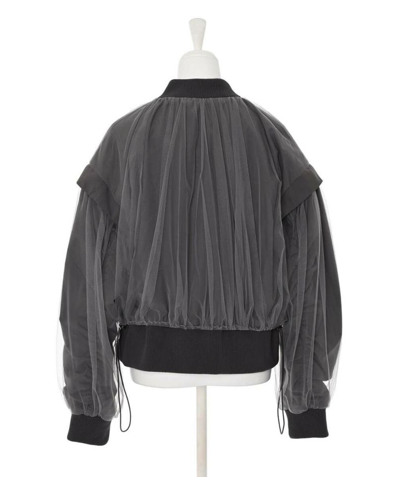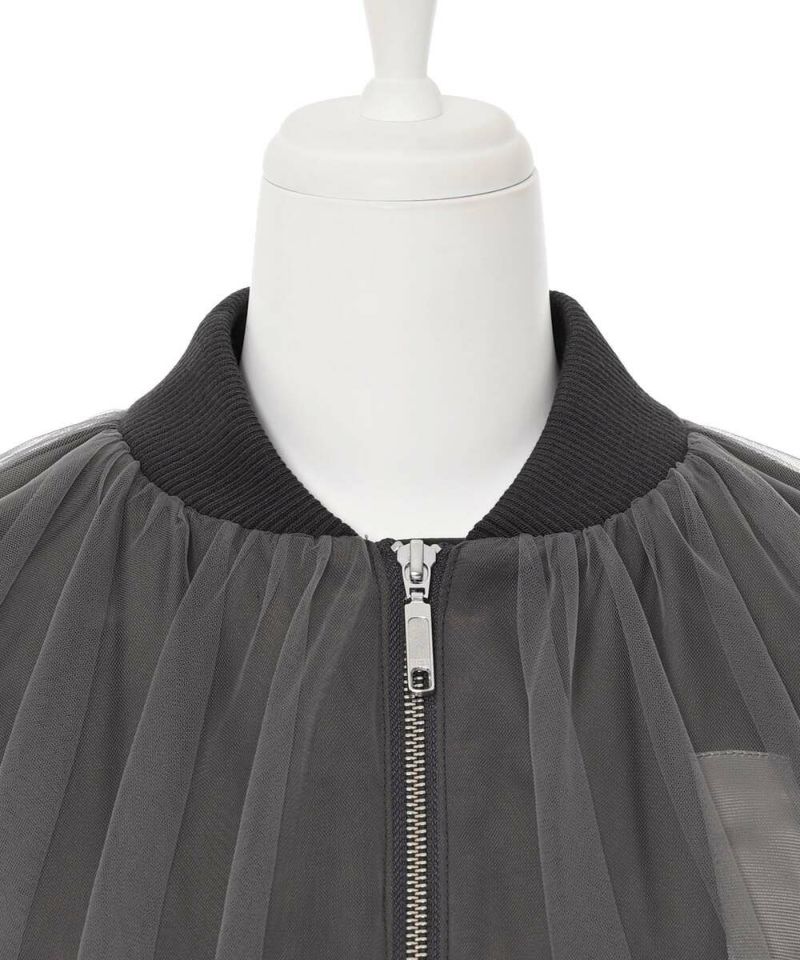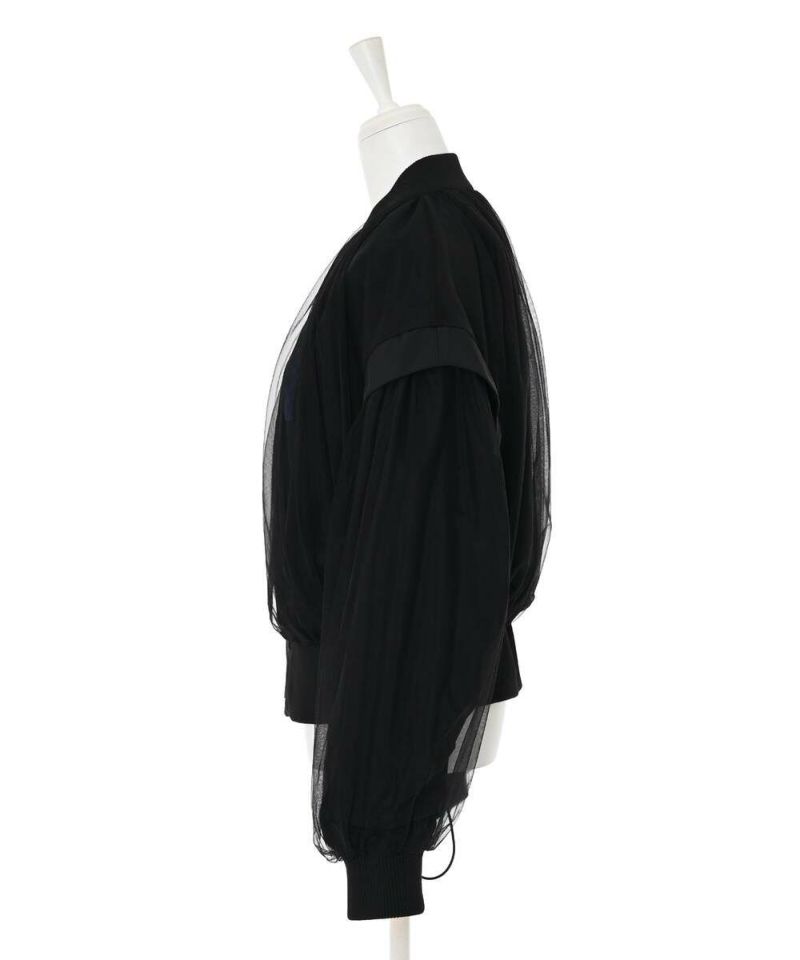 【MIDVEIN】“ストリートとモードを軸とし派生していく 遊び心のあるデザインをリアルクローズに” をコンセプトに“ ニューカジュアル ”を提案しているブランド。軽い着心地なのに防寒性も高いお洒落な優秀MA-1に、チュールがドッキングされたデザイン。ドロストコードがスポーティーな印象を、チュールでフェミニンさをプラス。ボトムを選ばない丈感とシンプルなデザインで着回し力◎【model】H156H163 B78 H84/H160 B80 H85