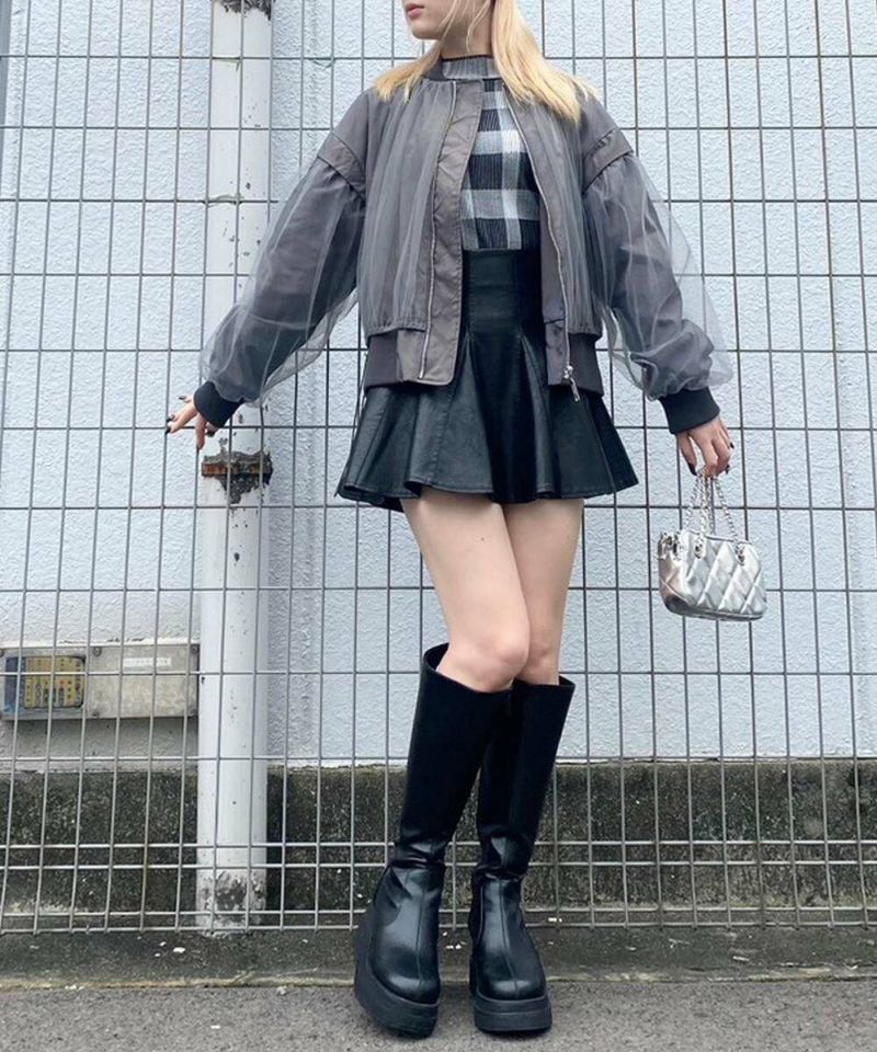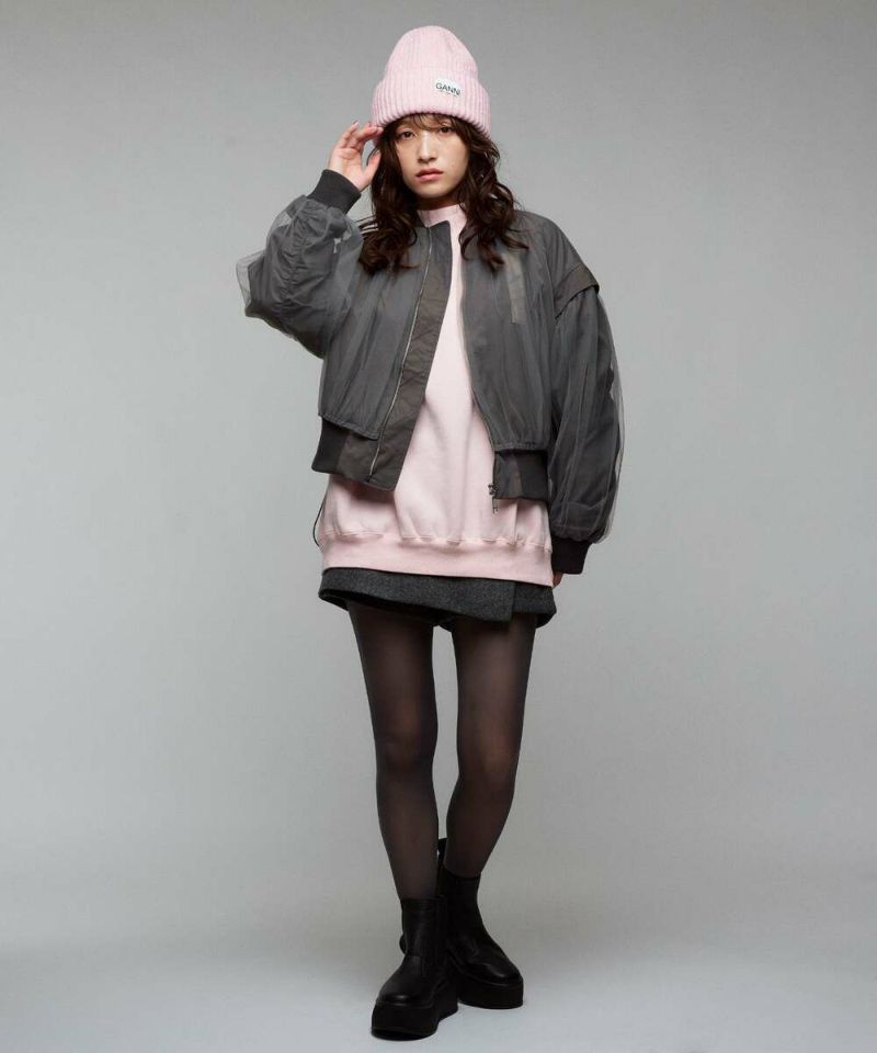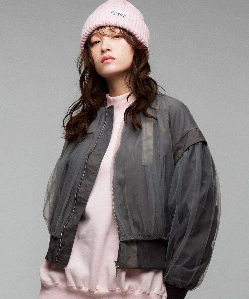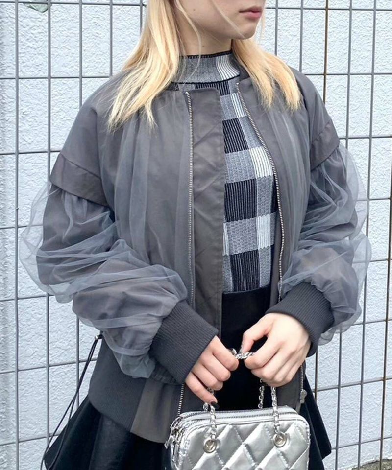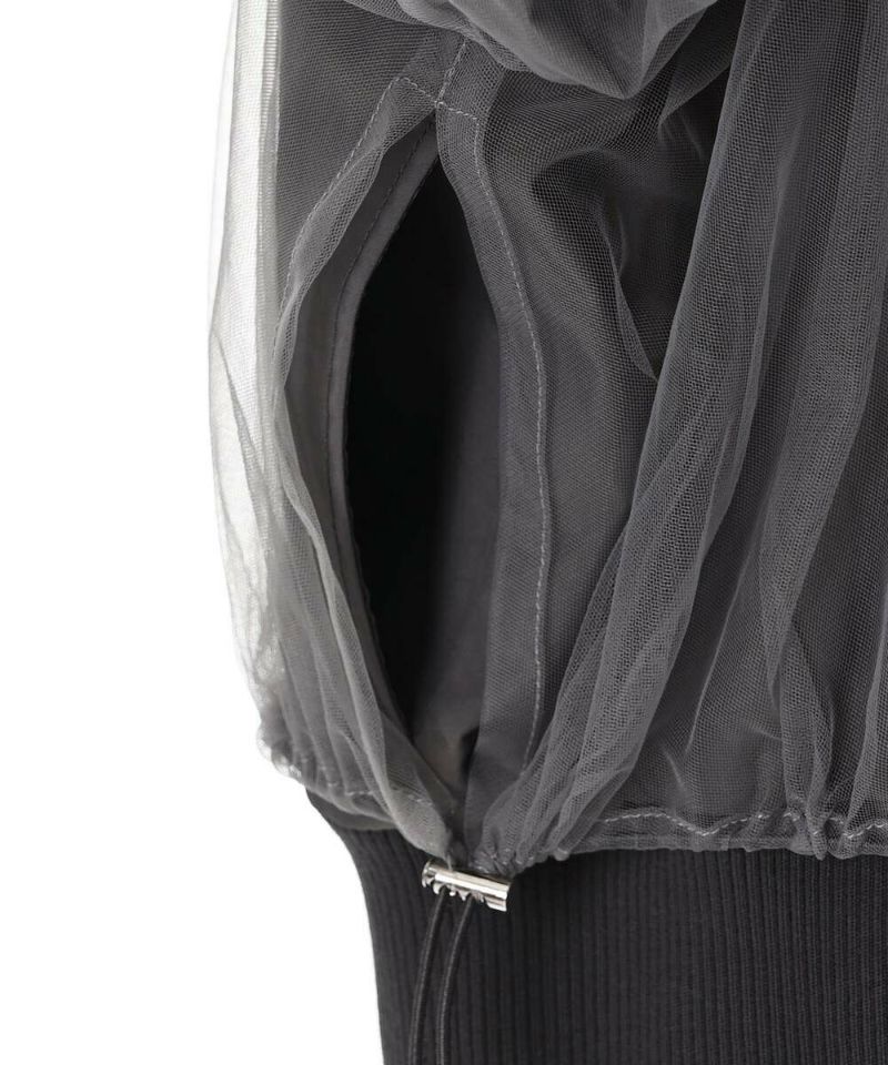 【MIDVEIN】“ストリートとモードを軸とし派生していく 遊び心のあるデザインをリアルクローズに” をコンセプトに“ ニューカジュアル ”を提案しているブランド。軽い着心地なのに防寒性も高いお洒落な優秀MA-1に、チュールがドッキングされたデザイン。ドロストコードがスポーティーな印象を、チュールでフェミニンさをプラス。ボトムを選ばない丈感とシンプルなデザインで着回し力◎【model】H156H163 B78 H84/H160 B80 H85