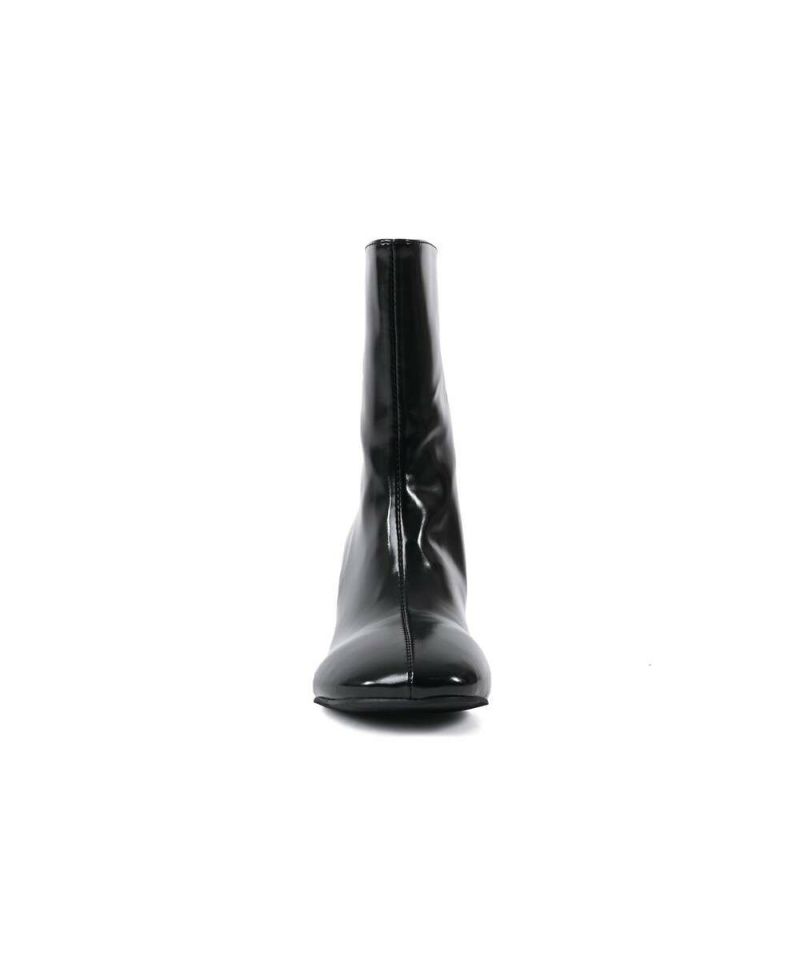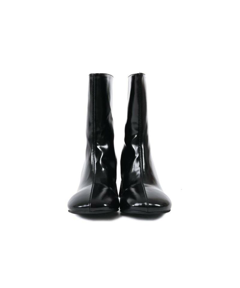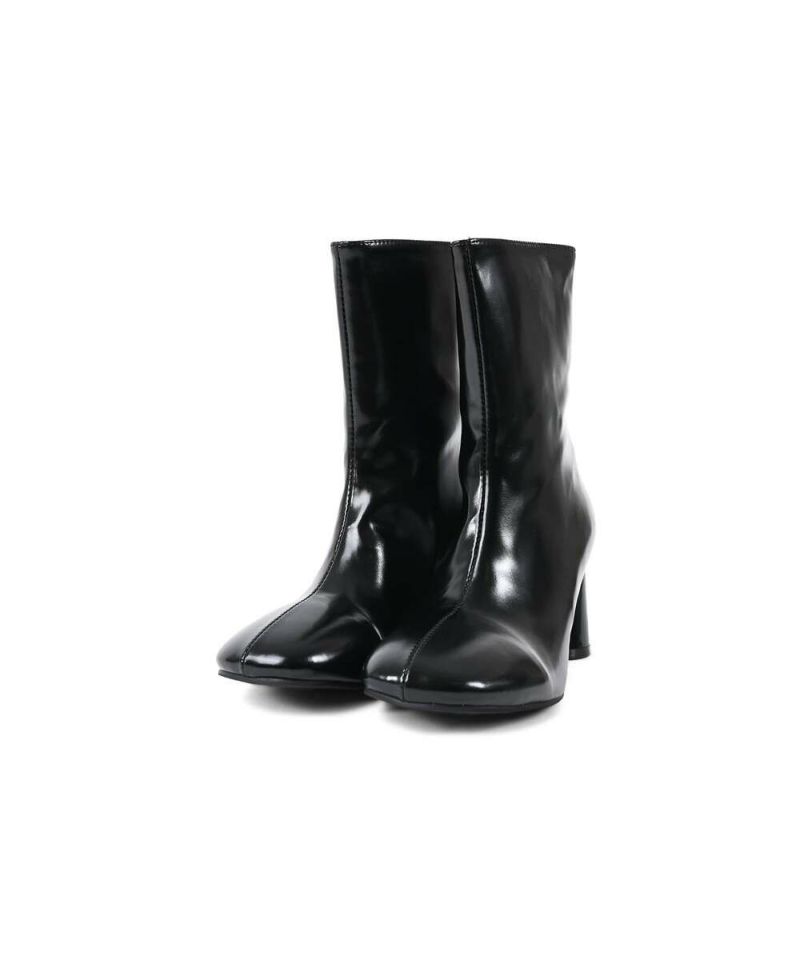 すっきりとしたトゥラインと光沢のあるエナメル素材が大人っぽい印象になるショートブーツ。どんな装いにも相性抜群で今年のマストアイテム間違いなし。