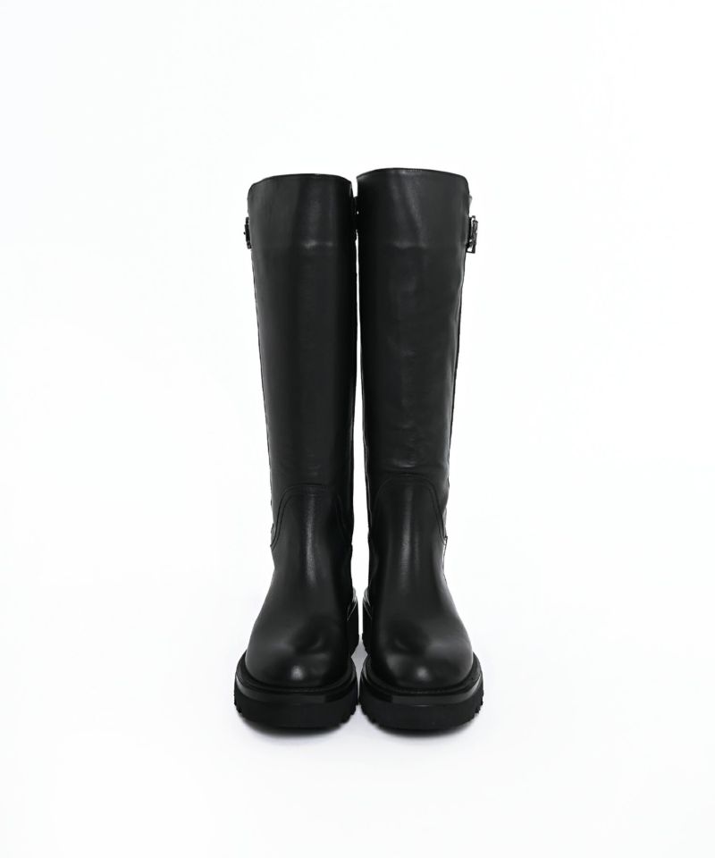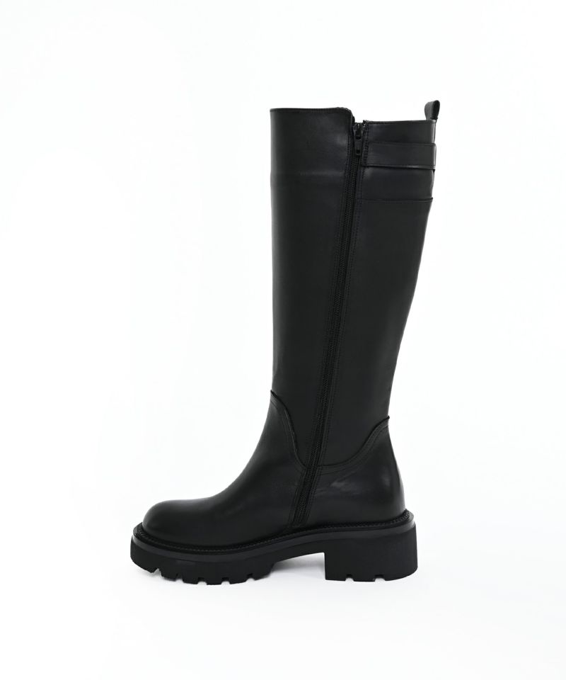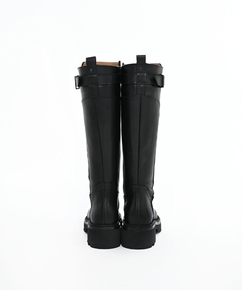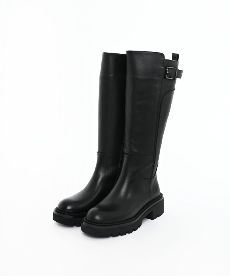 無駄のないミニマルなデザインに、バックルがさりげないアクセントのロングブーツ。すらりとした縦のラインが脚をきれいに見せ、上品で洗練された印象に。程よいフィット感のあるシルエットが女性らしさを引き立てつつ、どんなスタイリングにも馴染む万能な一足です。