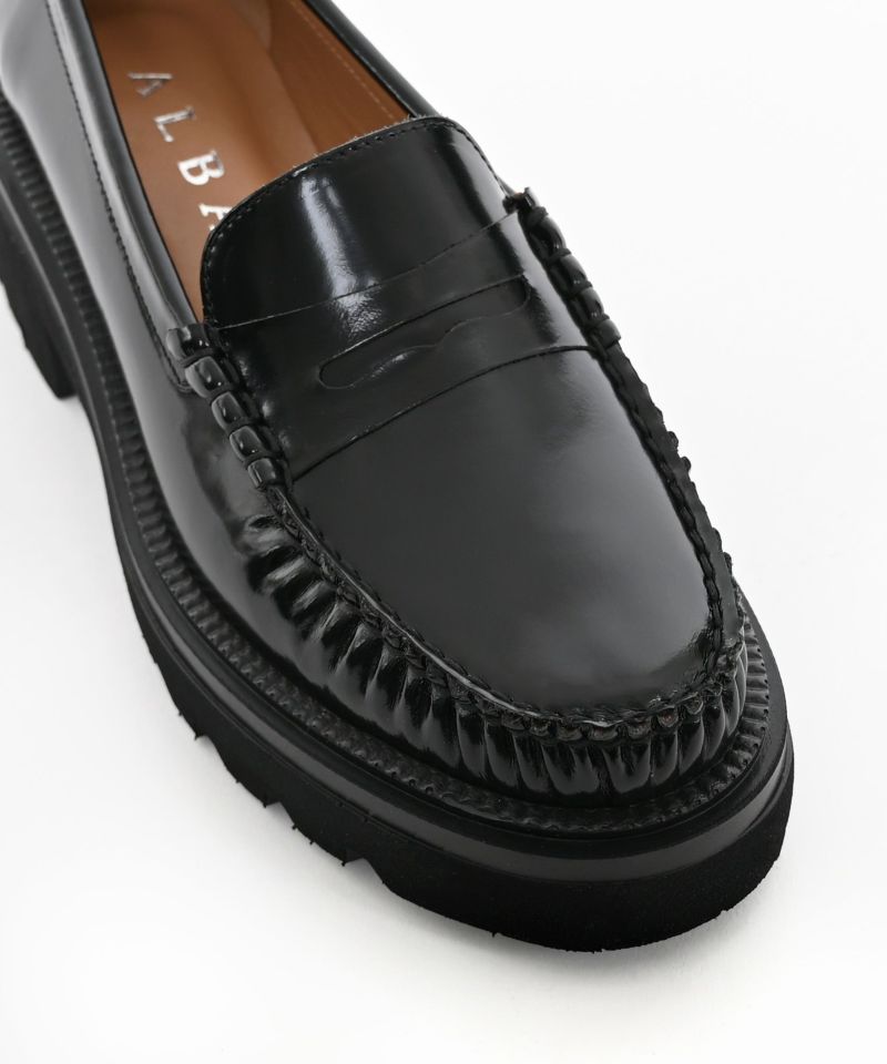端正なフォルムで仕立てたシンプルなローファー。つま先に寄せを入れる事で、さりげない立体感と柔らかな表情を演出します。すっきりとしたシルエットの中に程よい存在感があり、上品さと抜け感を両立。無駄のないデザインながら、細部のディテールが印象に残る一足です。