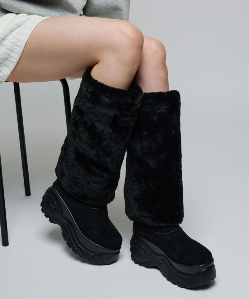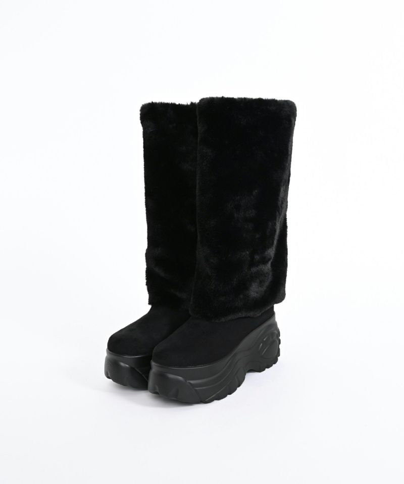 厚底デザインが脚のラインをすっきりと見せ、スタイルアップを叶える一足。ボリュームのあるファーがシーズンムードを高め、コーディネートに華やかさをプラスします。サイドファスナーのないデザインながら、広めに設計された履き口で脱ぎ履きもスムーズ。機能性とデザイン性を兼ね備えた、シーズンの主役になるブーツです。