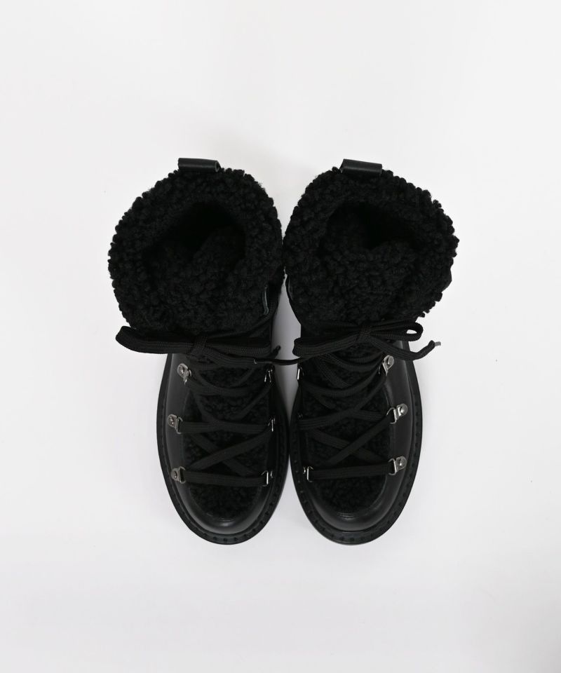 レザー×ボアがドッキングされた甘辛テイストなブーツ。存在感のあるデザインで、コーディネートにモードなアクセントをプラスします。