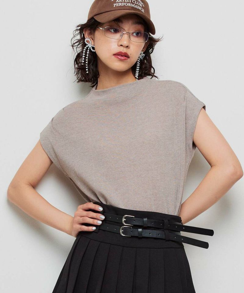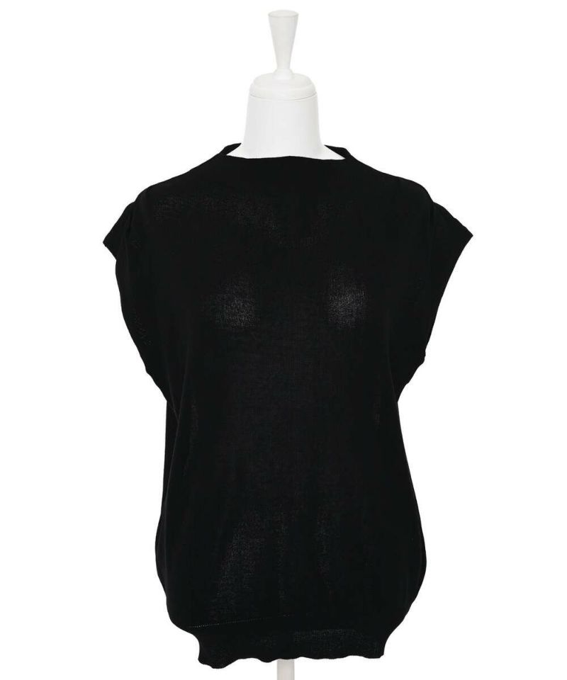 程よくゆとりのあるシルエットが魅力のサマーニットトップス。ハイネックデザインで上品な雰囲気を。薄手な素材感でサラッと一枚でも、レイヤードでも活躍するアイテム。フレンチスリーブが華奢見え効果を◎【model】:H165 B78 H83 / H163 B78 H84/H160 B80 H85