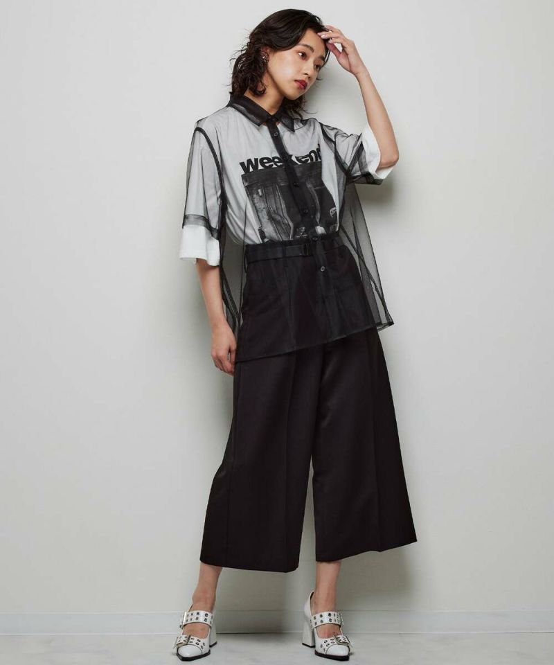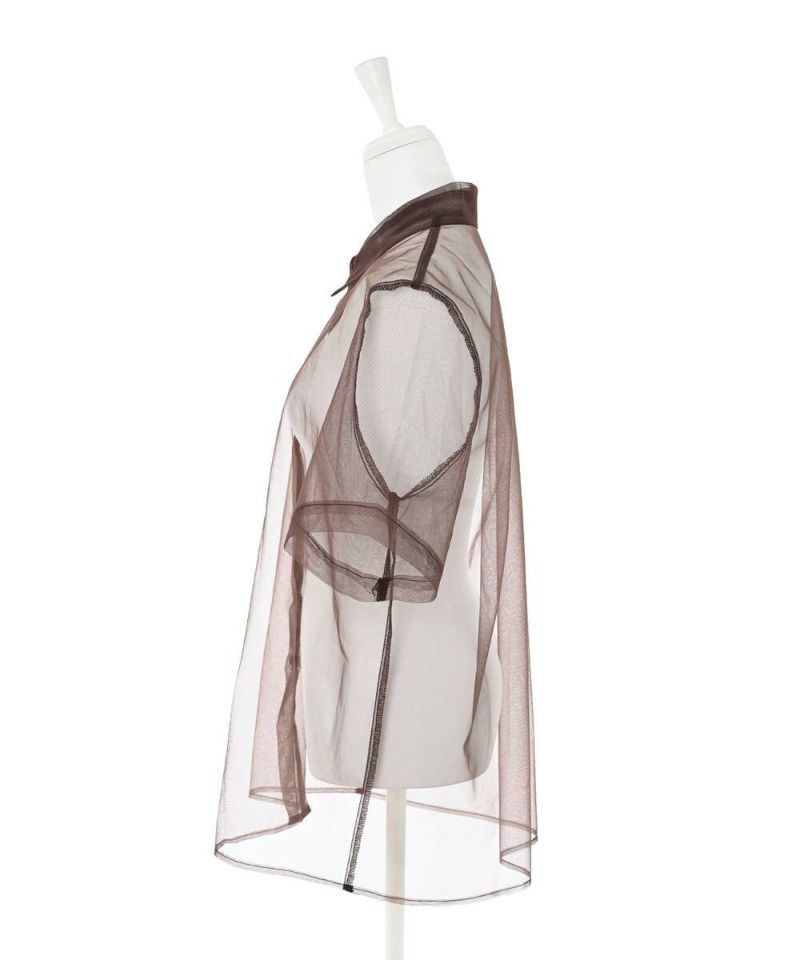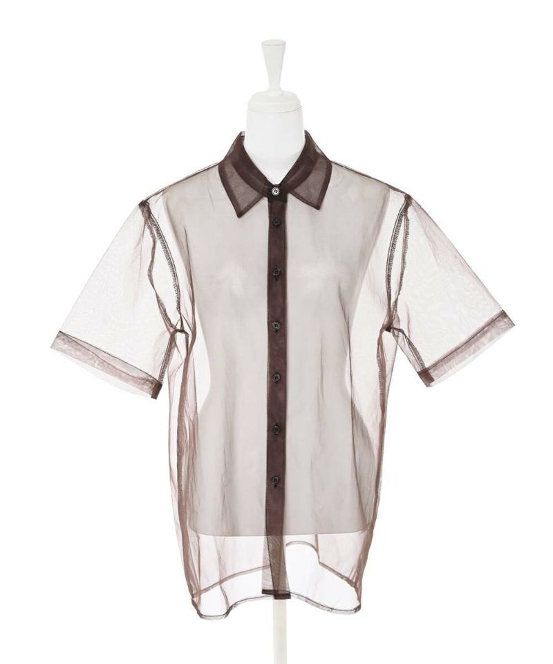 ハリのあるオーガンジー素材がセンシュアルな雰囲気で、高級感をプラスしたシャツ。トップスでも羽織りとしても活躍するアイテム。程よい透け感がレディライクな印象に。ゆとりのあるサイズ感なので、タンクからTシャツまでインナーに着用できます。【model】:H165 B78 H83 / H163 B78 H84
