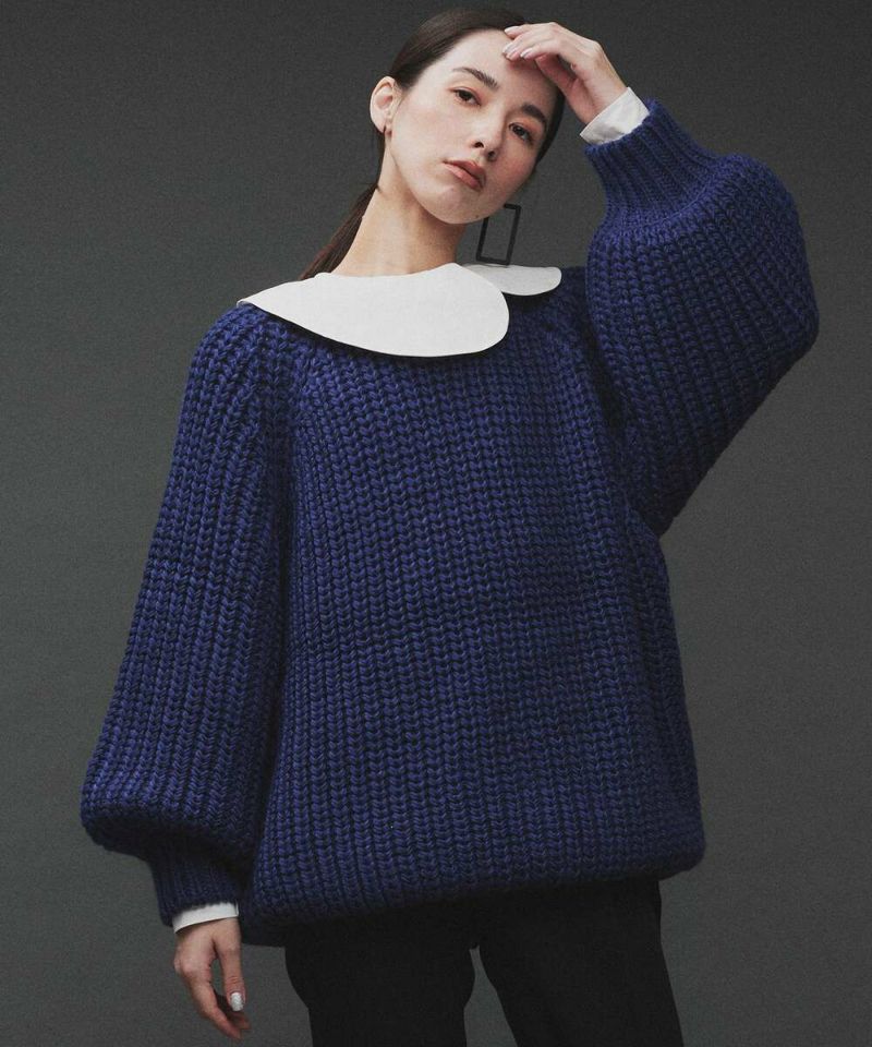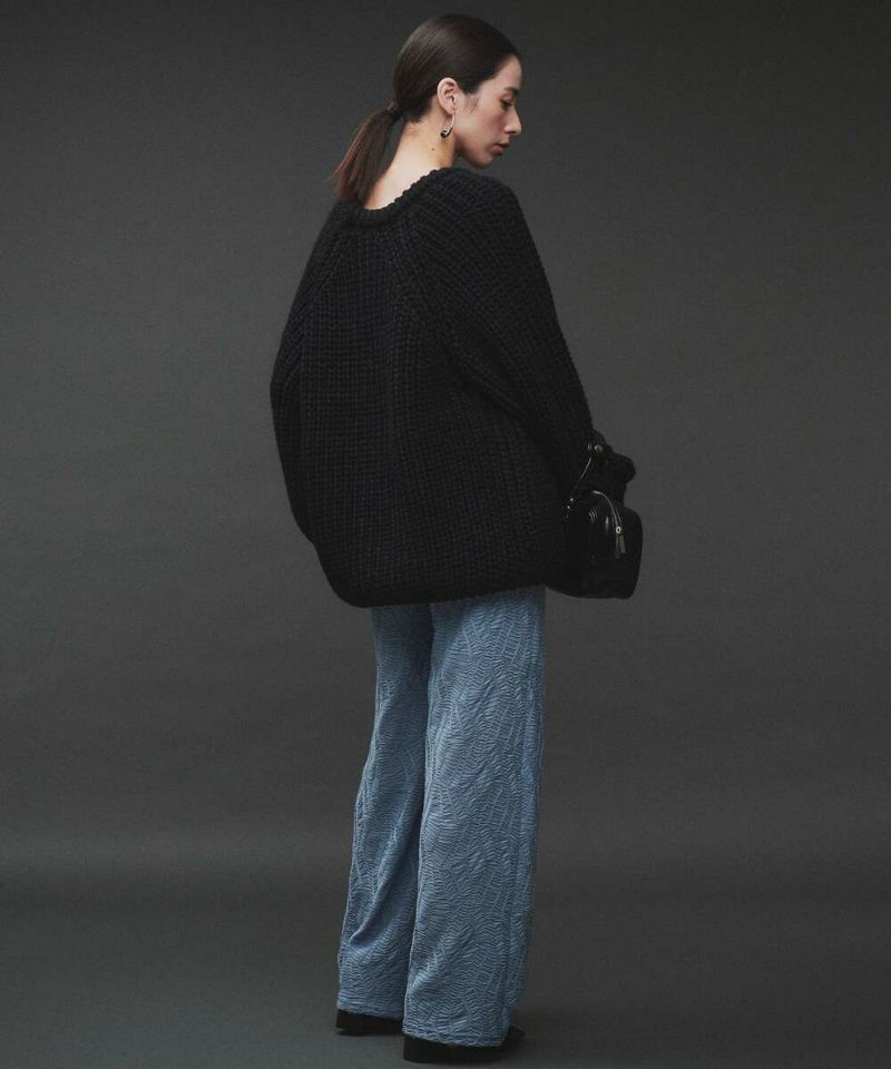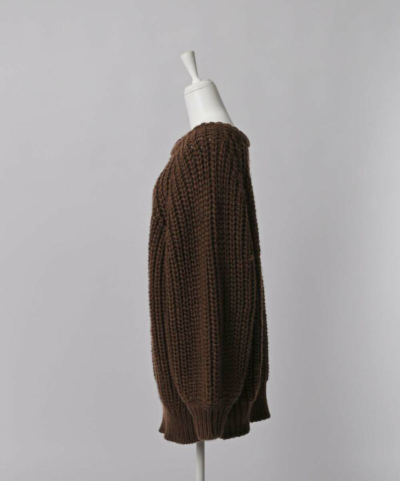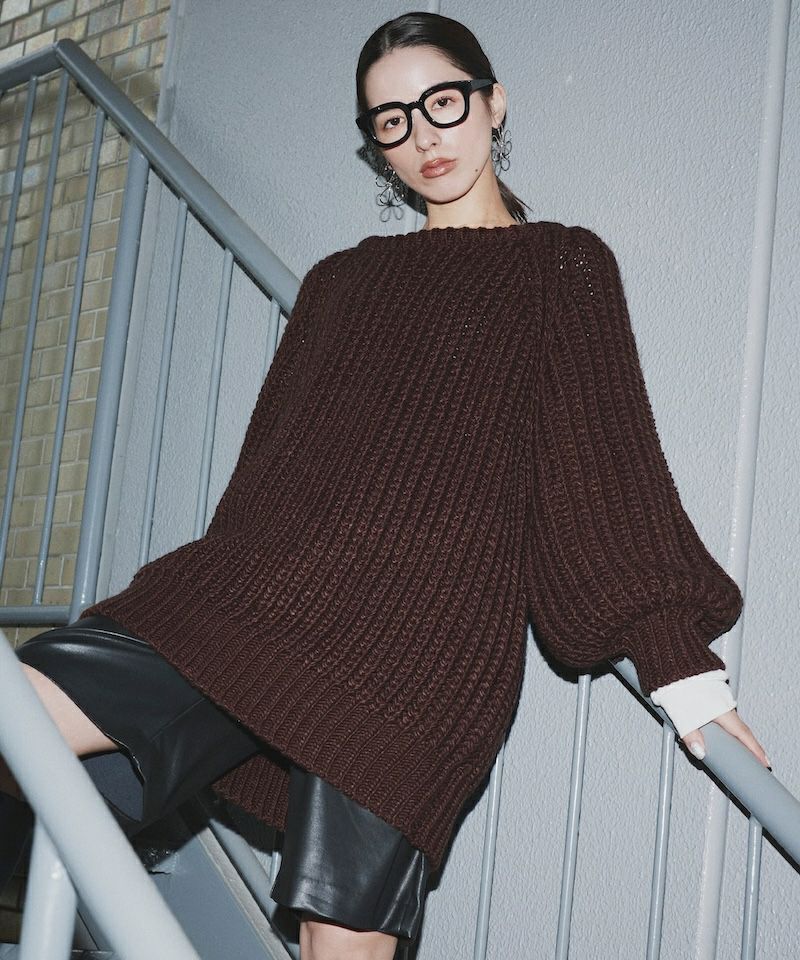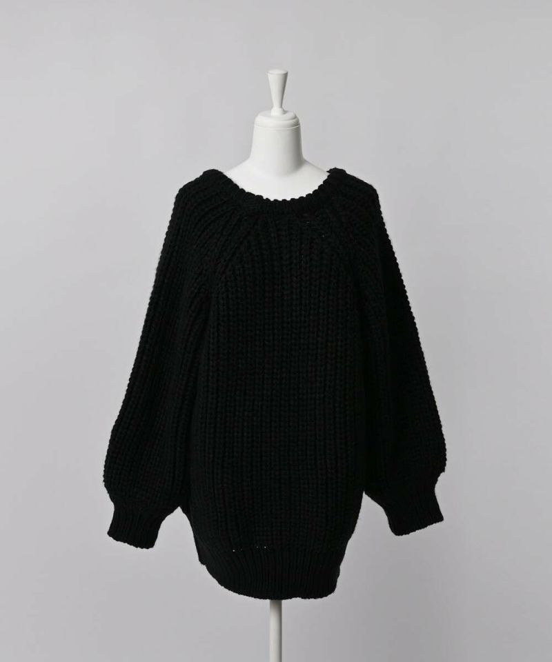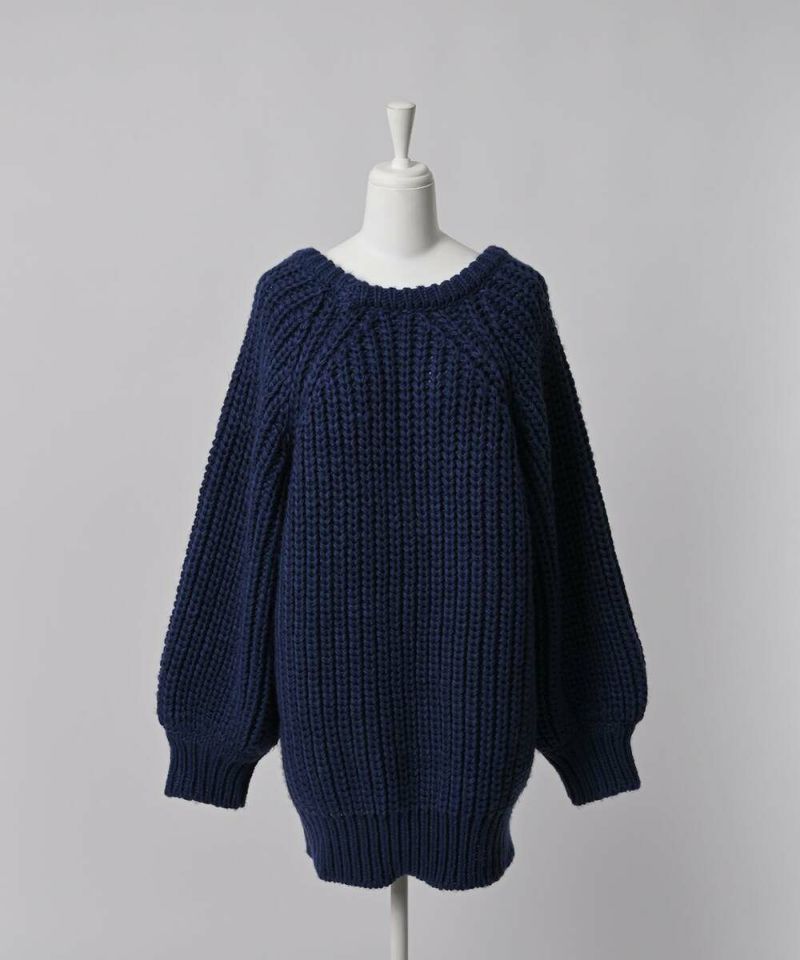 2ゲージの糸を用い、今年らしい抜け感のあるざっくりとした編地で仕上げたローゲージニット。ゆったりとしたビッグシルエットで、伸縮性のある柔らかくもちもちとしたニット生地がリラクシーに着用できます。袖にたっぷりと生地を溜めたシルエットと肩回りをスッキリと見せてくれるラグランスリーブがアクセントに。様々なアイテムとのレイヤードが楽しめるシンプルなデザインが魅力的なアイテム。【model】H160 B80 H85