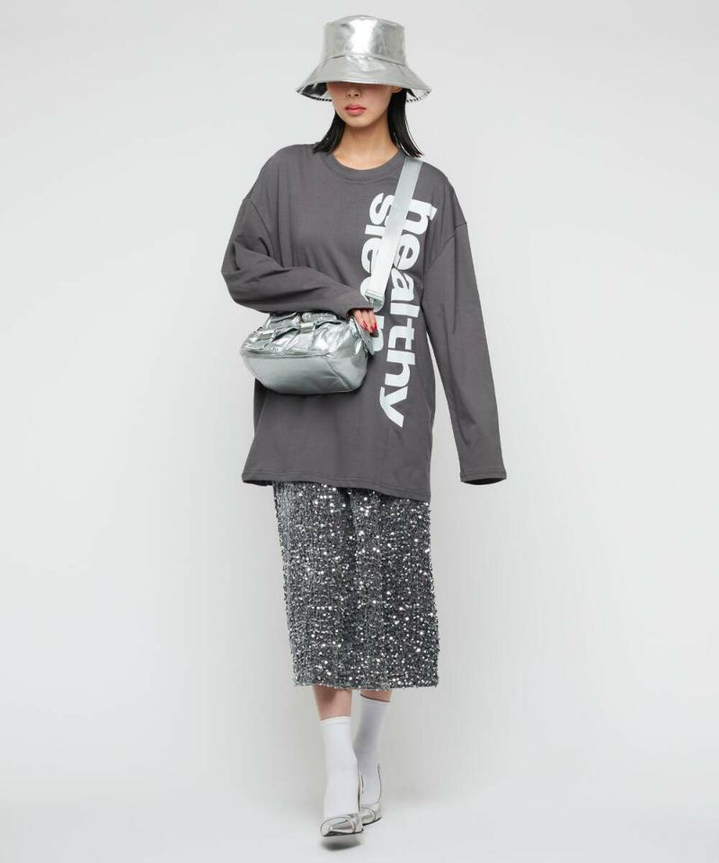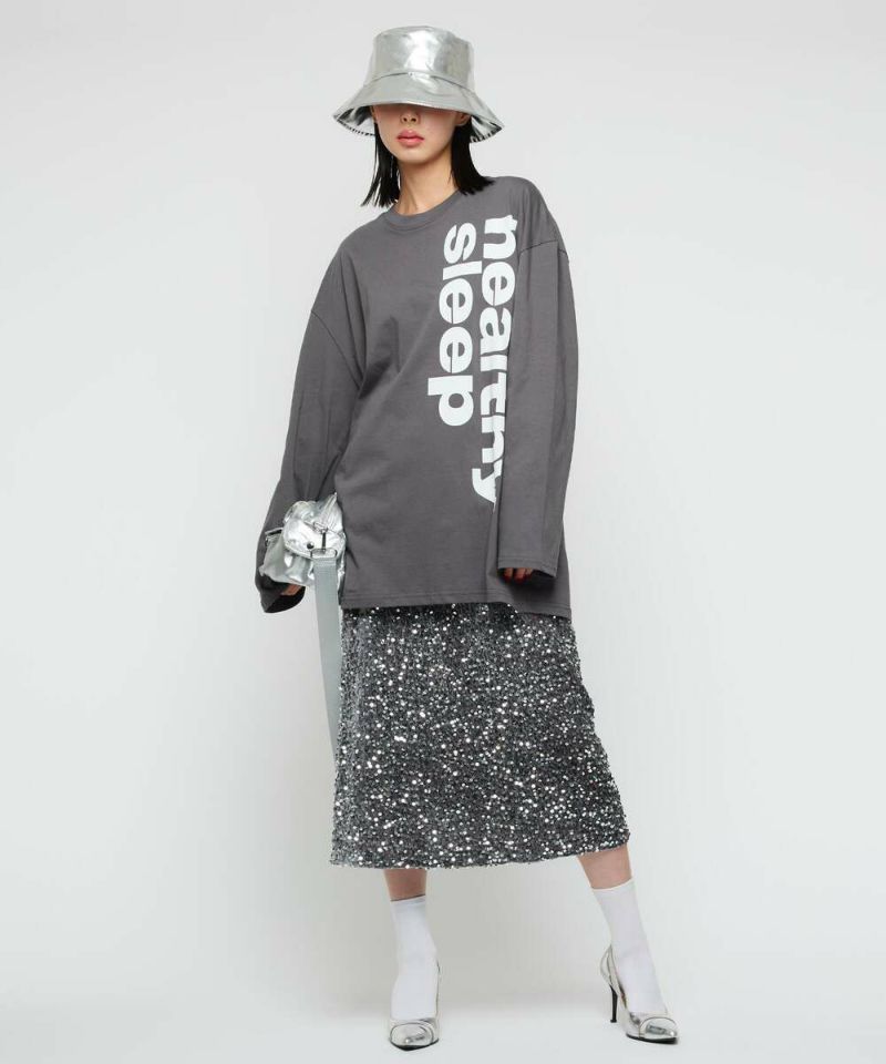 ロゴデザインのベーシックなロングTシャツ。袖丈が長めでバランスが取りやすく、インでもアウトでも着用しやすいサイズ感。パンツ・スカートどちらとも好相性。 カジュアルから綺麗めまで幅広く活躍。【model】:H165 B78 H83 / H163 B78 H84/156cm
