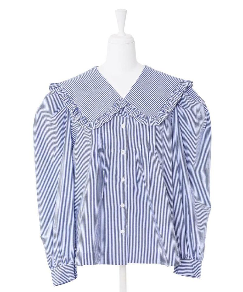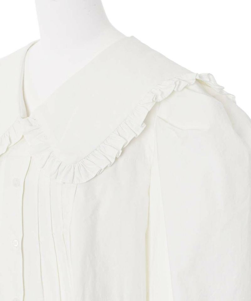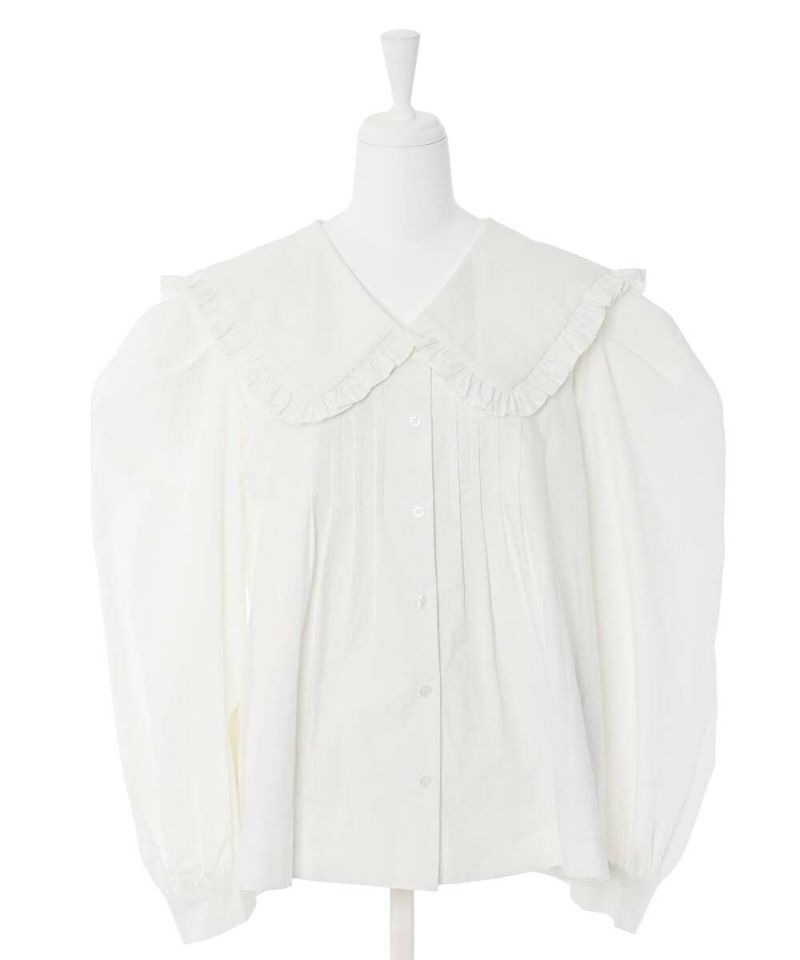 トレンドのビックフリルカラーが、お顔周りを華やかな印象にしてくれる大人可愛いブラウス。 程よくボリュームのある袖とフロントのプリーツデザインが女性らしさをプラス。 上からカーディガンやニットなどをレイヤードしてビックカラーを出して着用するのもオススメ。 レイヤード次第で秋口から春先まで着回しできるアイテム。【model】H156H165 B78 H83