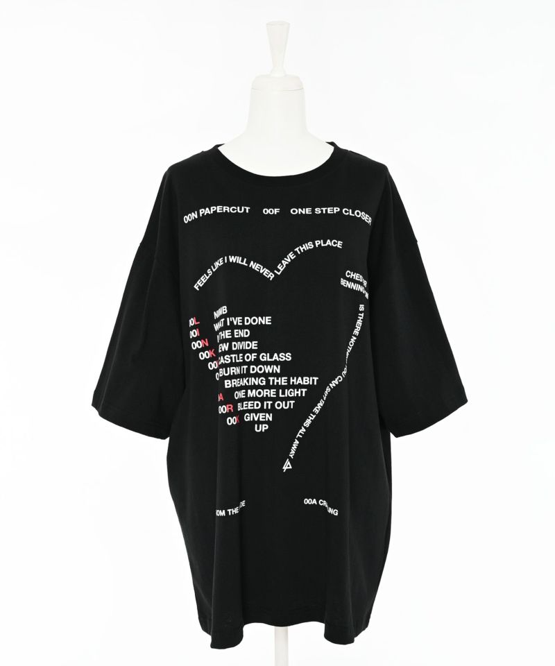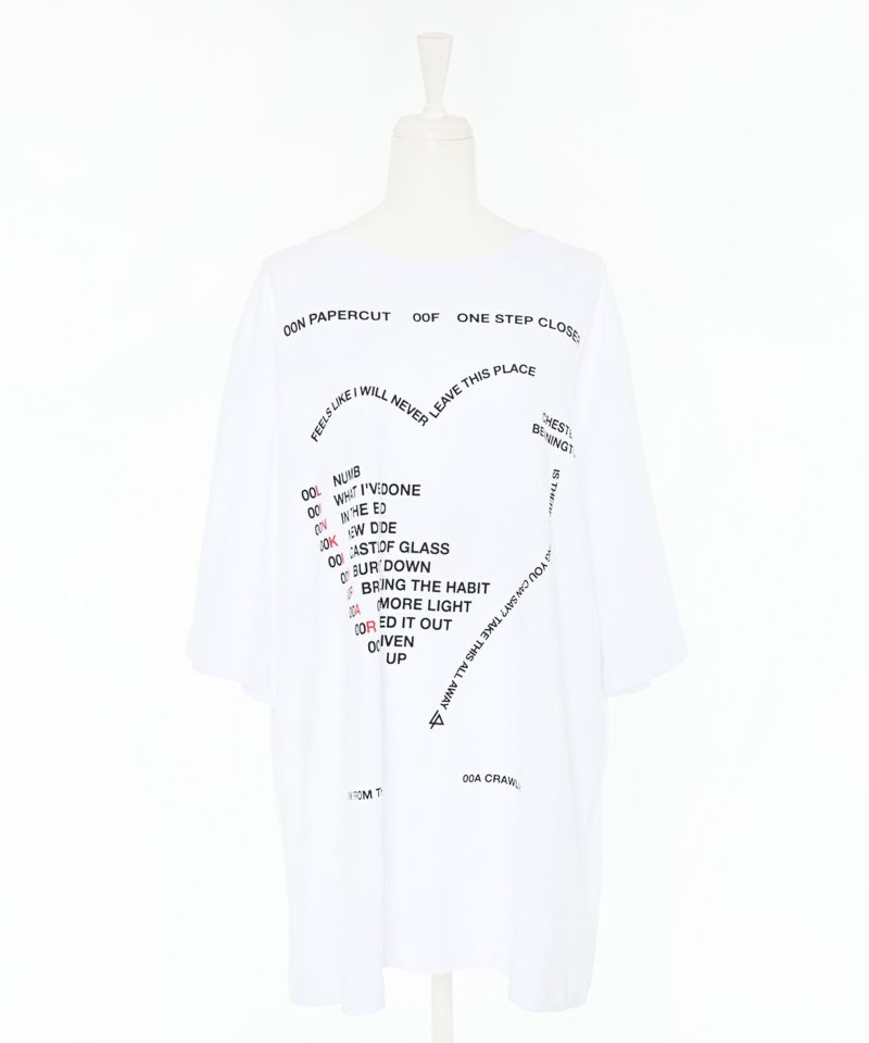 フロント部分のハートデザインが目を惹くトップス。オーバーサイズのTシャツはカジュアルな印象ですが、ハートのデザインがあることでガーリーな印象も与えてくれるため、デニム合わせやスカート等、ボトムスを選ばす着用いただけます。【model】H160 B80 H85 / H165 B78 H83