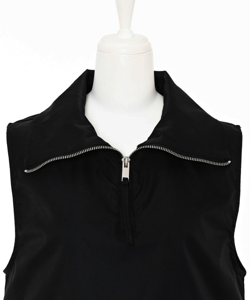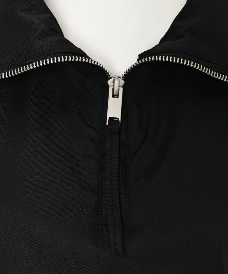 ネックジップがスタイリッシュな印象のトップス。首元のジップは開閉可能で、開けていただくと顔周りがすっきりし、閉じていただくとモードな印象でその日の気分でスタイルを変えていただけます。裾にドローコードがついてるため締めていただくとスタイルアップにも。軽量でモード感満載のつるっとした光沢のある素材を採用。秋口にはインナーにロングTシャツやシアートップスなどをレイヤードしたり、上からジャケット等を羽織るのも◎【model】H165 B78 H83