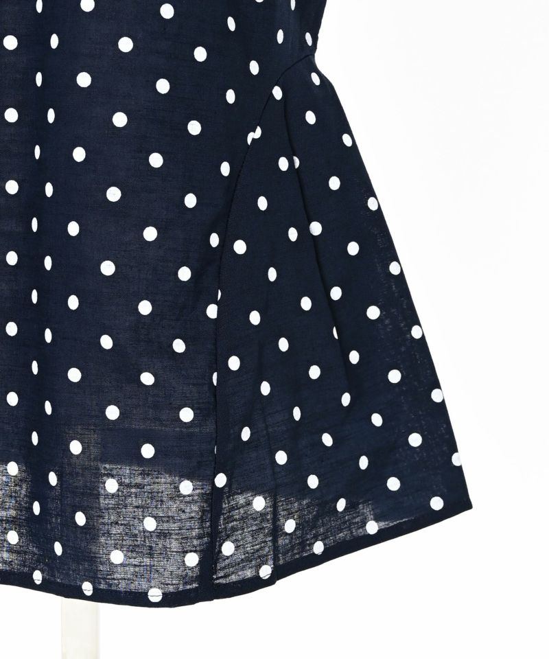 レトロな雰囲気のドット柄を全体に使用したパフトップス。さりげないペプラムシルエットがくびれを強調してくれ、スタイルアップ効果に。パフスリーブと肌見せのバックスタイルが女性らしさをプラス。リネン素材を使用していることで、風通しと着心地の良さ◎着脱しやすいジップアップを採用。