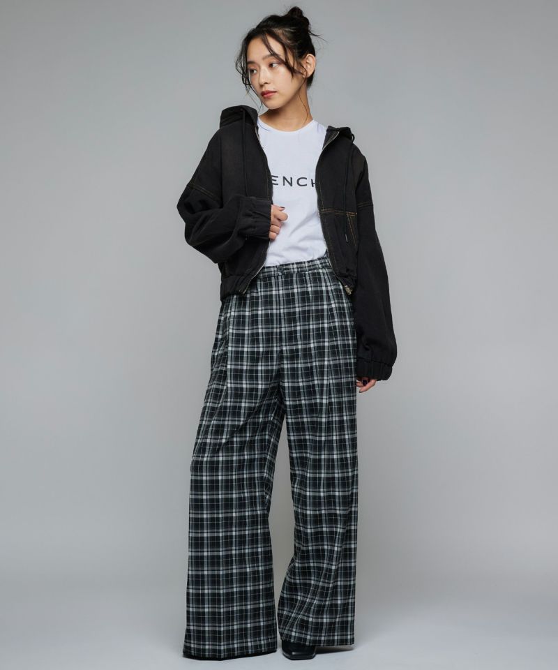デニム素材で仕立てたジップアップパーカー。ドロップショルダーのゆったりとした袖と、裾に施されたギャザーが生み出す丸みのあるシルエットが魅力です。ショート丈のバランスが全体をコンパクトにまとめ、スタイルアップ効果を演出。フードとフロントジップのディテールがカジュアルな表情を添えつつ、ラフ過ぎない洗練された印象に。