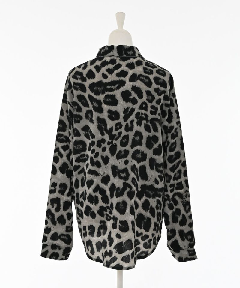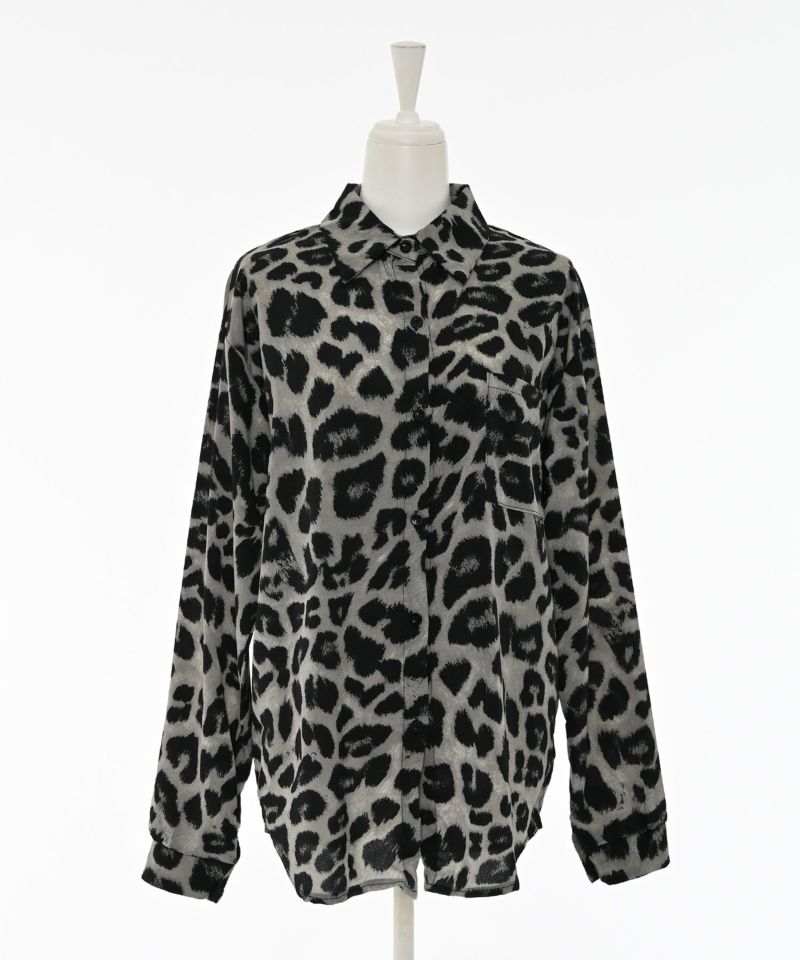 全体的にレオパード柄を施すも、モノトーンよりの落ち着いたカラーにすることで派手になりすぎず、大人っぽく着こなせるアイテム。シャツ自体はゆったりとしたシルエットを採用しており、大人っぽさを演出しつつ、抜け感をプラスします。また、一枚で存在感が出るだけでなく、インナーや羽織としても活躍します。