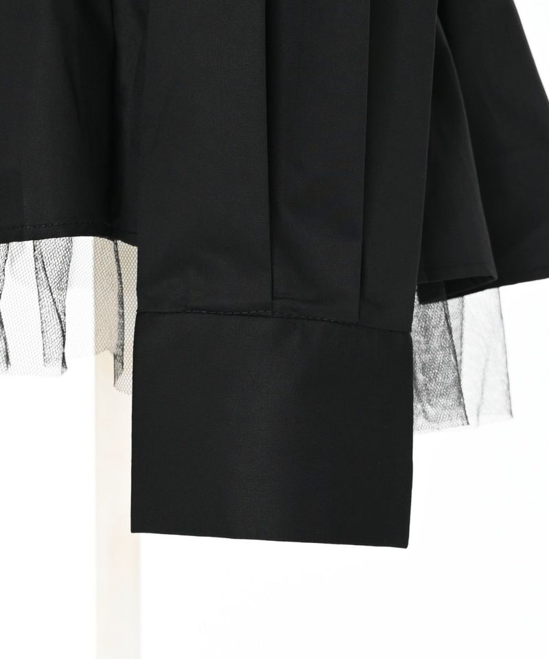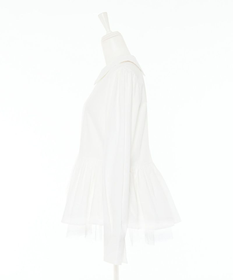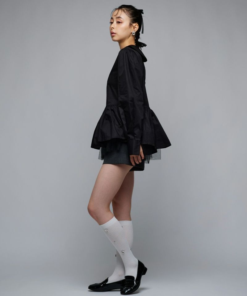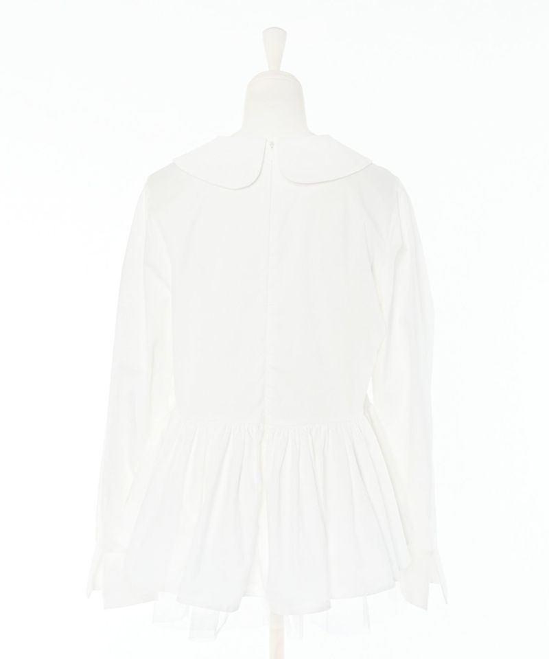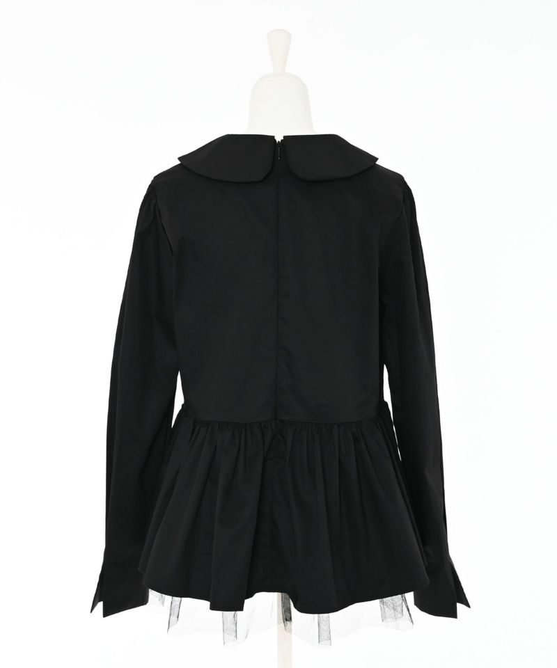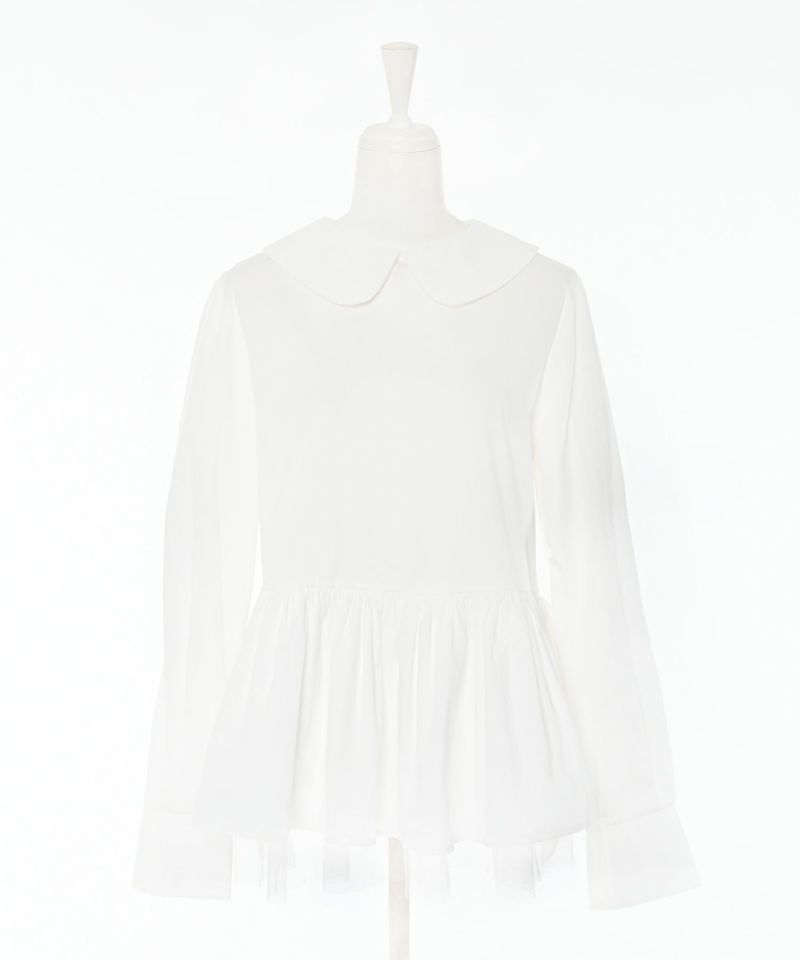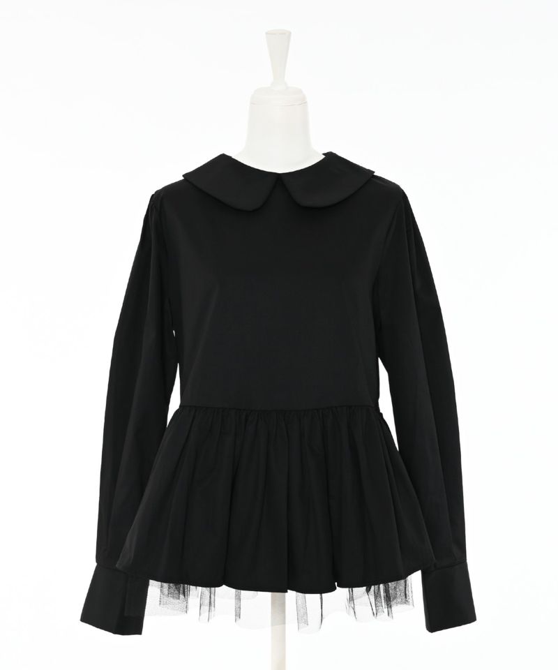 ラウンドカラーとペプラムシルエットが可愛らしいブラウス。裾からチラ見えするチュール素材がフェミニンさをプラス。ウエスト切り替え部分にベルトを巻くと、更にスタイルアップ効果を◎肌寒い季節になると、上からクロップド丈のニットやカーディガンなどをレイヤードするのもオススメ。【model】H160 B80 H85 / H165 B78 H83