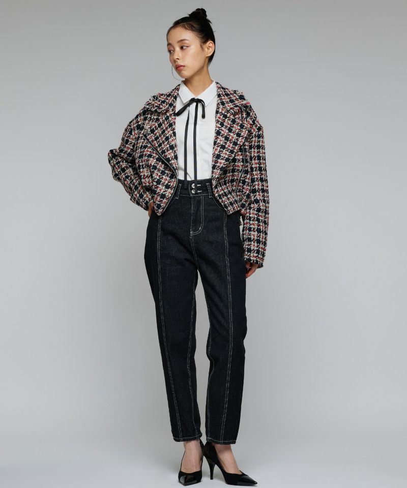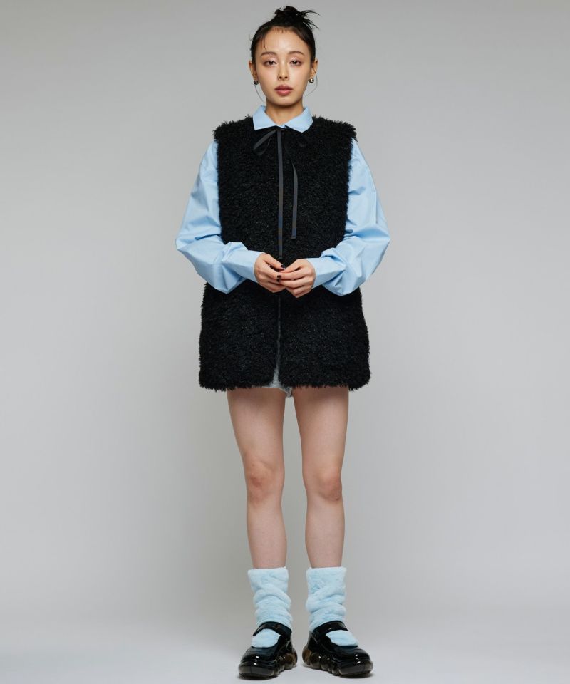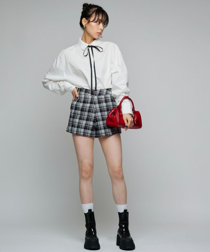 【ポイント】 存在感のあるビッグシルエットに、リボンタイが映えるモードなブラウス。一枚でコーデを引き締め、洗練された印象を与えてくれます。 【デザイン・シルエット】 全体的に大き目の作りとなっており、カジュアルになりがちなシャツもリボンタイがつくことで一気にレディライクな仕上がりに。袖丈が長めの設定になっているので袖元をくしゅっとしていただくのもおすすめです。 【おすすめのスタイリング】 ミニボトムスと合わせてガーリーに、デニム等と合わせてカジュアルコーデと幅広くお使いいただけます。スラックス等きれいめのパンツと合わせてオフィスカジュアルにお使いいただくのも◎ 【素材】 さらっとしたハリのある素材。快適な着心地と美しいシルエットをキープしてくれます。【model】H160 B80 H85 / H165 B78 H83