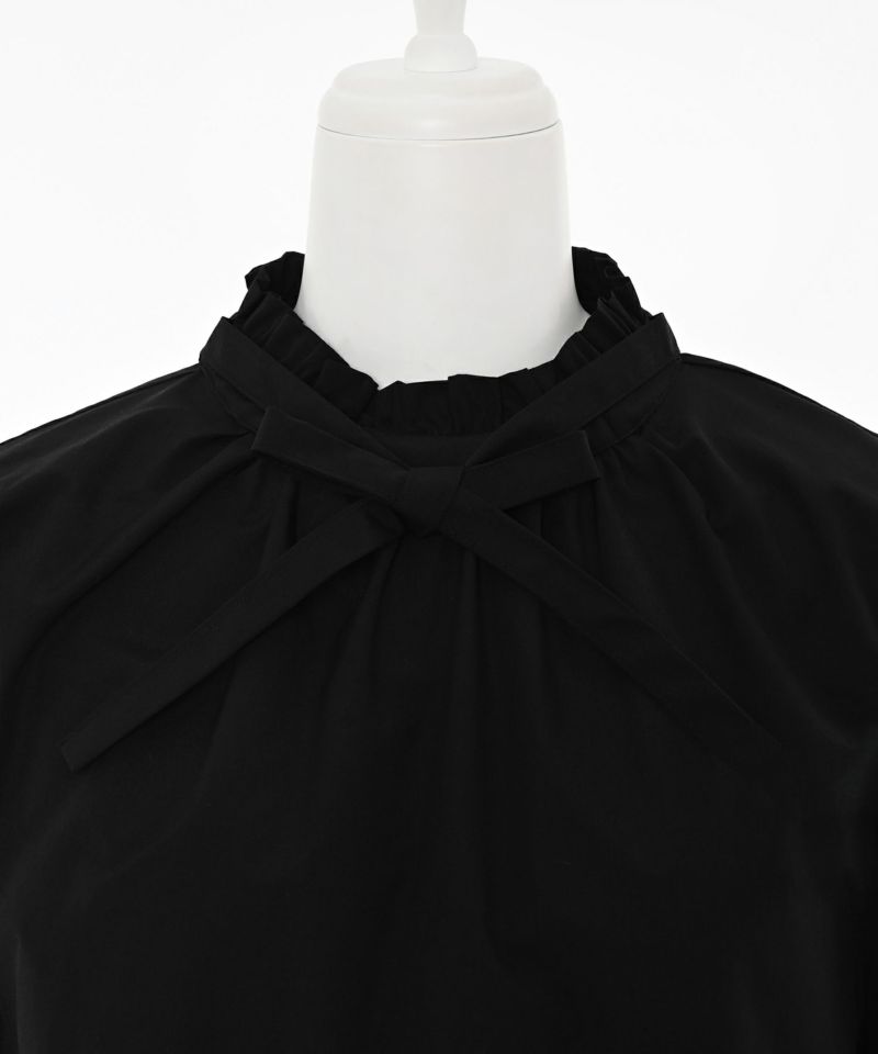 【ポイント】 前後2WAYで使用できるボウタイリボンと袖口のリボンがフェミニンな印象を与えるブラウス。普段使いからオケージョンシーンでも活躍する着回し力のある一枚です。 【デザイン・シルエット】 首元のギャザーデザインがシックな印象もプラスしてくれます。ボウタイと袖口のリボンは細めに設定されていて、甘くなりすぎず普段使いもしやすいデザイン。ベルスリーブが女性らしさを引き立ててくれます。身体のラインを拾わないゆとりのあるサイズ感。 【おすすめのスタイリング】 ロングスカートで綺麗めはもちろん、デニムパンツ合わせでカジュアルダウンするのもおすすめです。肌寒くなってきたら、ボウタイと袖口を出してカーディガンを上から着用するレイヤードスタイルも楽しめます。 【素材】 シワになりにくい上品な印象の素材。【model】H160 B80 H85 / H165 B78 H83