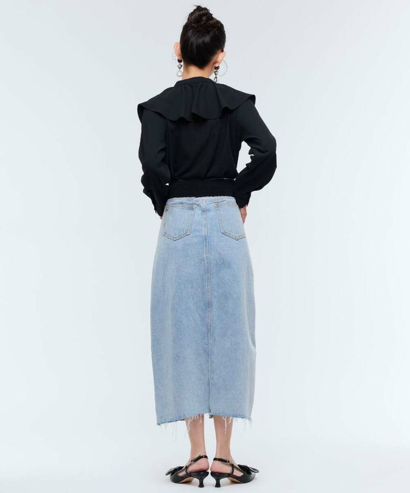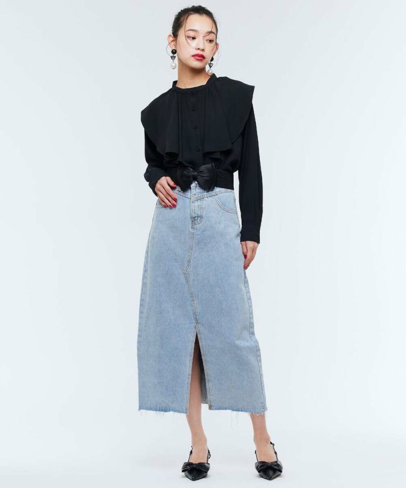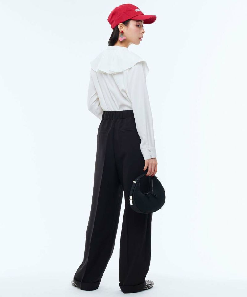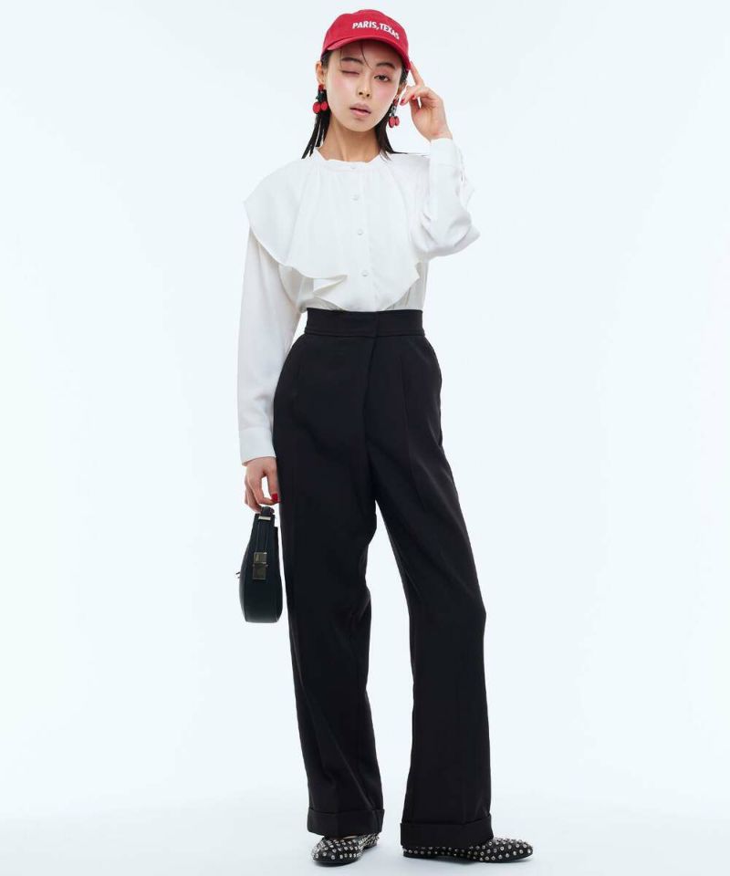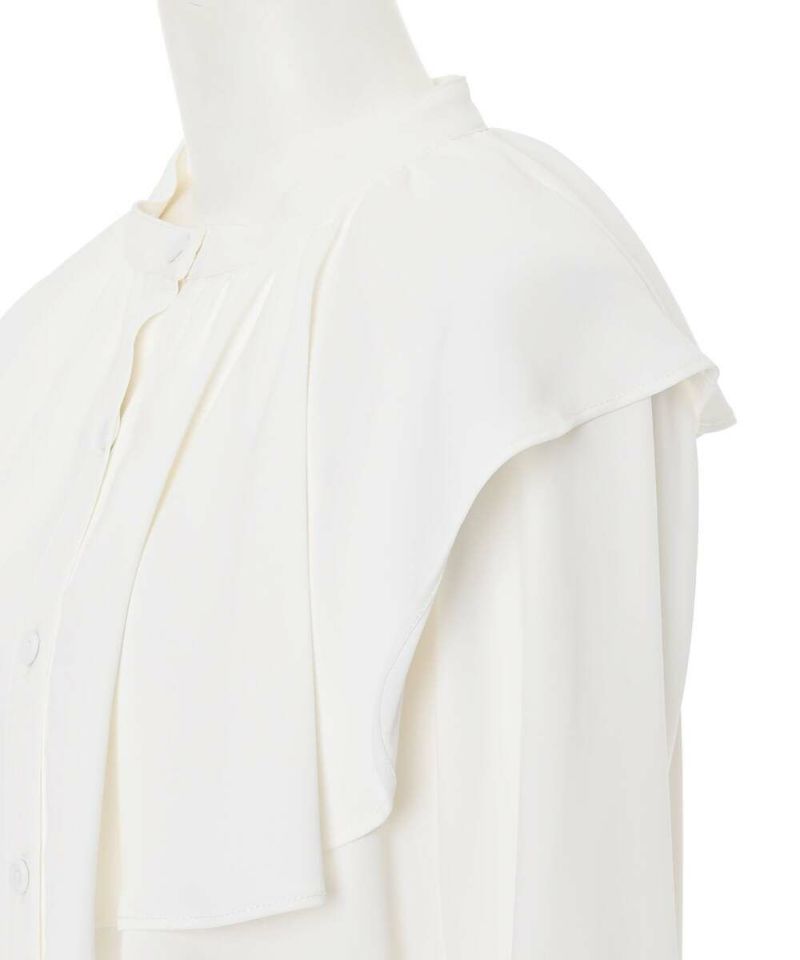 コーデに女性らしさをプラスしてくれる大きなラッフルカラーが特徴的なブラウス。シンプルなコーデに投入したり、ジャケットにレイヤードすれば、華やかに仕上がり着映えする1枚。サラッとした質感ながら、とろみのある柔らかい風合いは、着こなしに品を添えるシーズンファブリック。