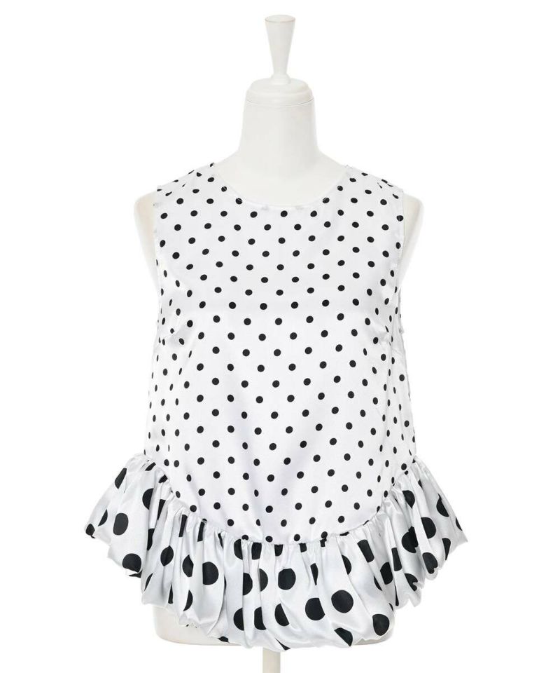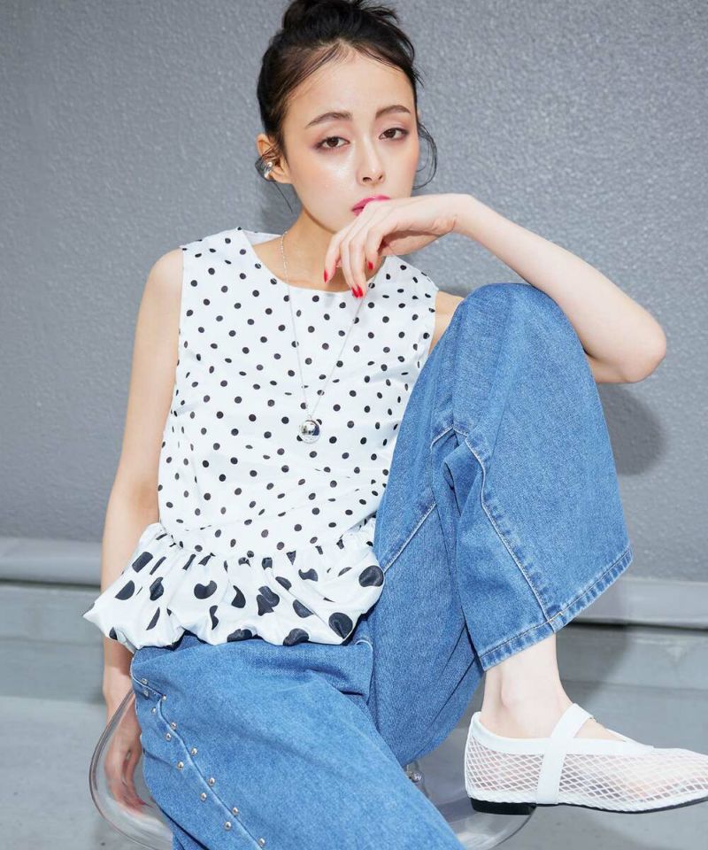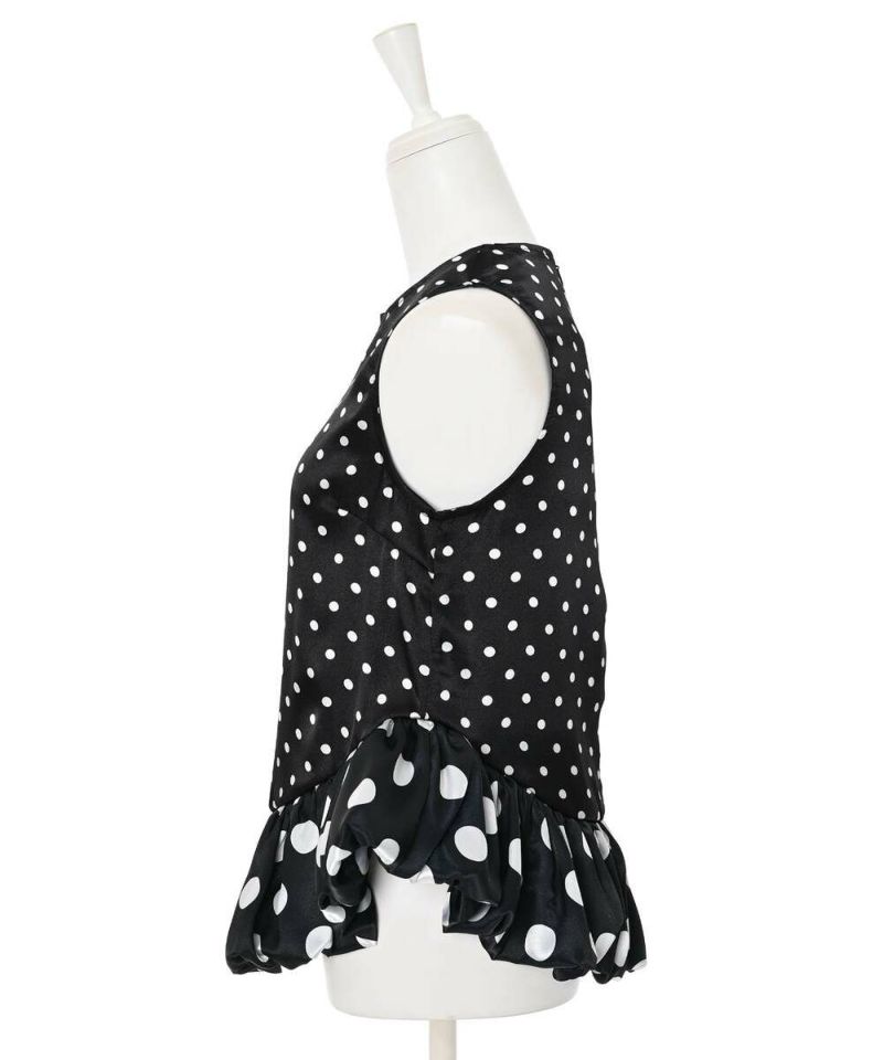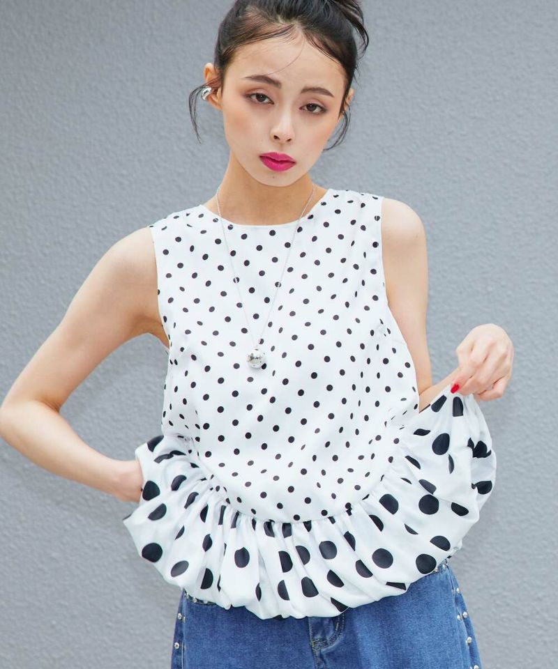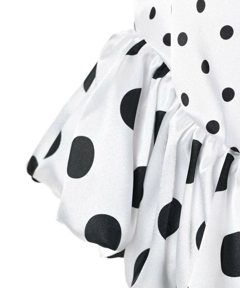 ドット柄をバルーンシルエットに落とし込み、身頃とバルーン部分を少し変えることで、フェミニン×モードな甘辛スタイルに仕上げました。 フェミニンな印象のドット柄ですが、光沢感のあるサテン生地を採用することで上品な印象をプラスしながらも◎ カジュアルになりやすい春夏のコーディネートにメリハリとなる一枚です。